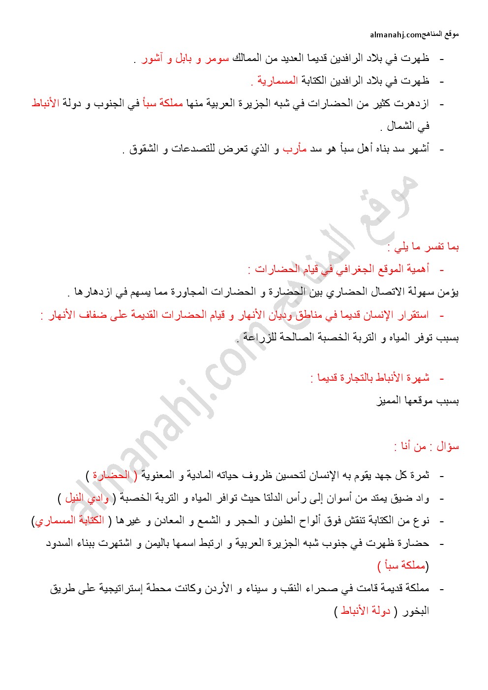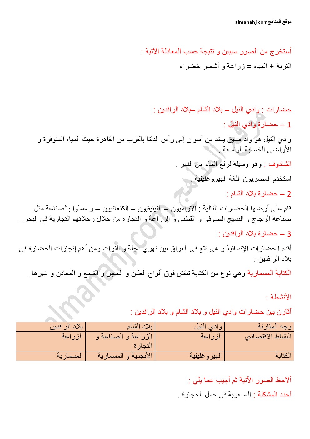 ورقة عمل الدرس الأول حضارات الوطن العربي | |||