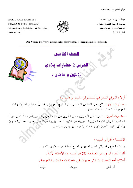 ورقة عمل دلمون وماجان, الصف الخامس, اجتماعيات, الفصل الأول, 2017-2018 - المناهج الإماراتية