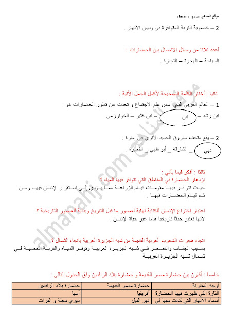2. الصف السادس, لغة عربية, أسئلة اختبار تدريبي وفق الهيكل الوزاري الجديد