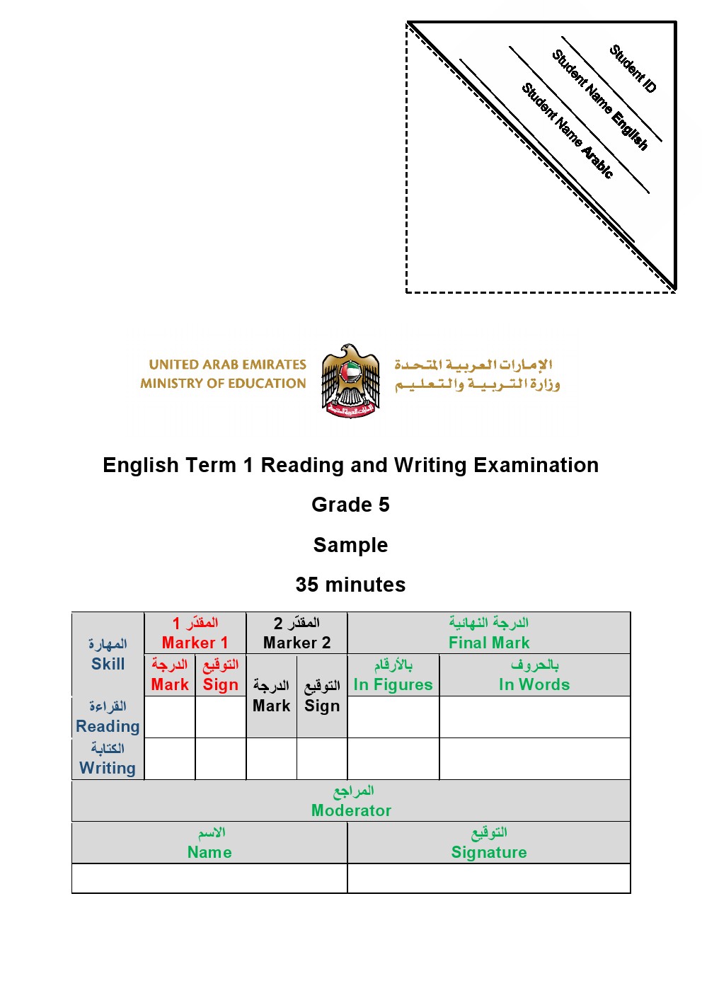 معلومات الملف: الصف الخامس, الفصل الأول, لغة انكليزية, 2017-2018,نموذجامتحان القراءة والكتنابة + الحل | |||