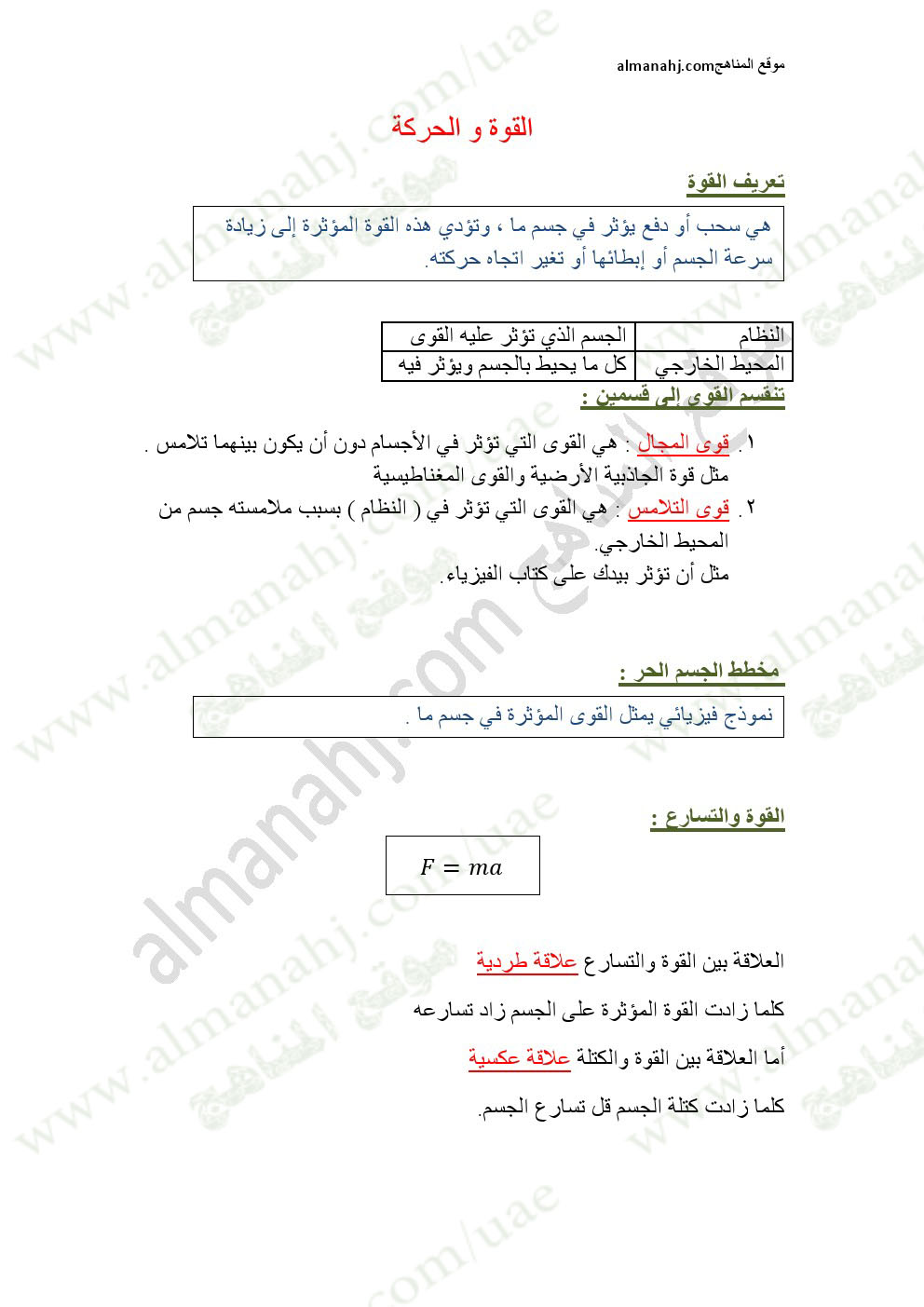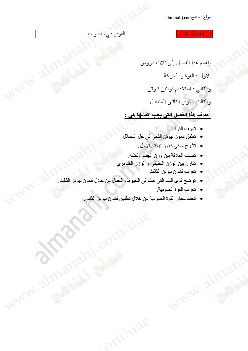 رابط تحميل وعرض ( ملخص شامل للفصل الرابع (القوى في بعد واحد) ) | |||