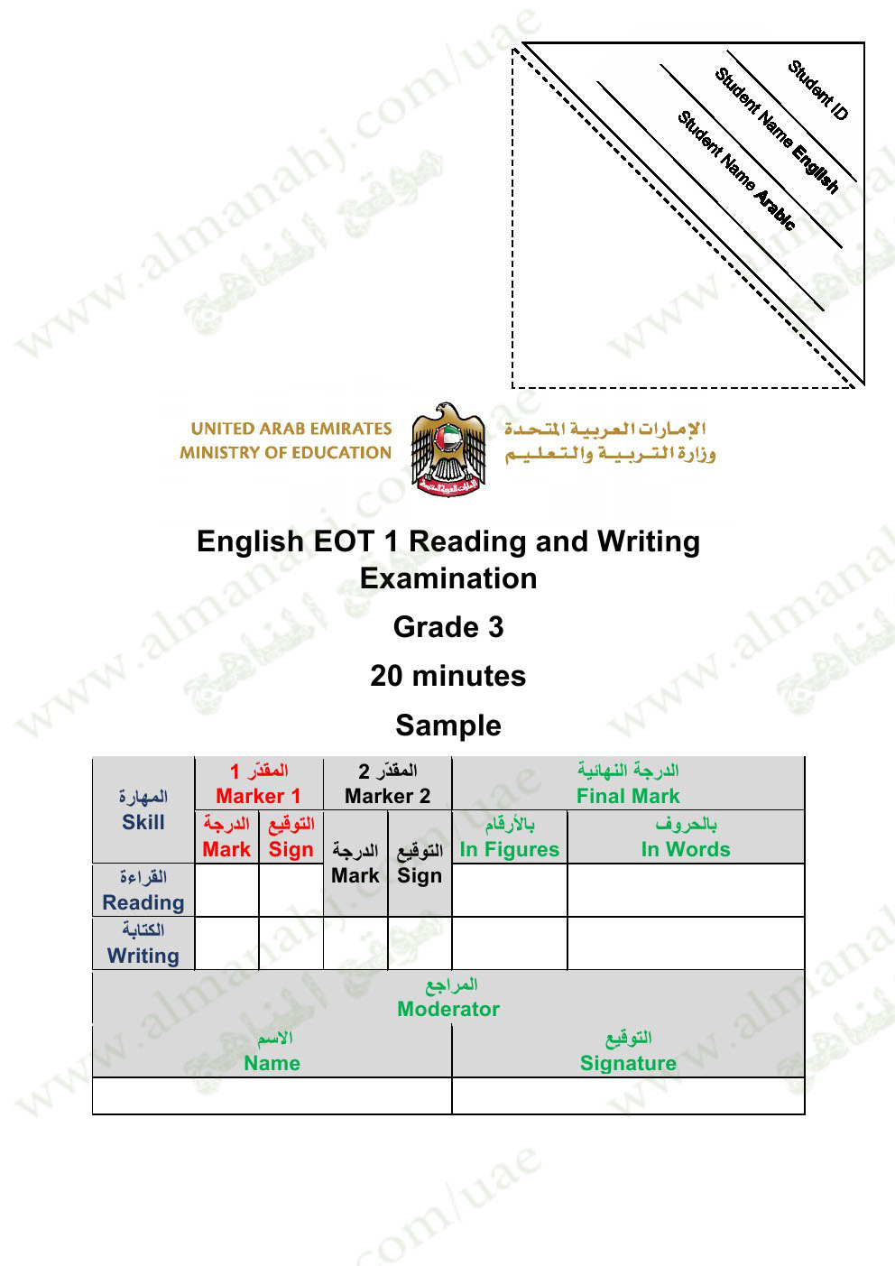 معلومات الملف: الصف الثالث, الفصل الأول, لغة انكليزية, 2017-2018, النموذج الوزاري في القراءة والكتابة | |||