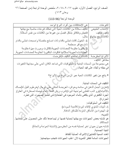 معلومات الملف: الصف الرابع, الفصل الأول, علوم, 2017-2018, ملخص الوحدة الرابعة (من الصفحة 96 وحتى 113) | |||
