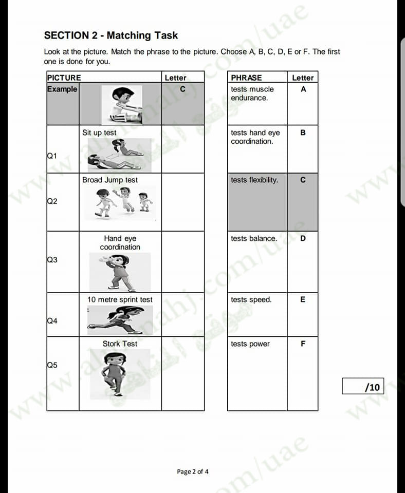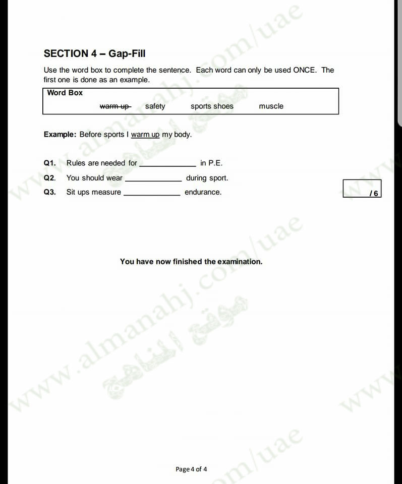 تربية بدنية النموذج الوزاري للامتحان | |||