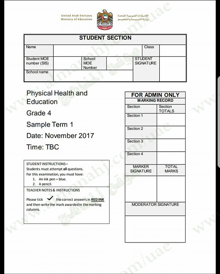 معلومات الملف: الصف الرابع, الفصل الأول, تربية بدنية, 2017-2018, النموذج الوزاري للامتحان | |||