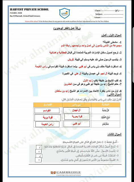| اضغط هنا لتحميل وعرض ( ورقة عمل الفكر الوحدوي مع نموذج الاجابة ) | |||