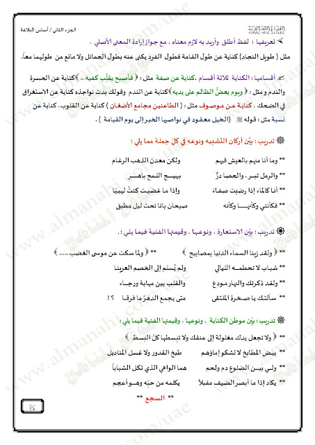 معلومات الملف: الصف الثاني عشر, الفصل الأول, لغة عربية, 2017-2018, أساس البلاغة: التشبيه - الاستعارة - الكناية - الجناس - الطباق - المقابلة - الطلب | |||