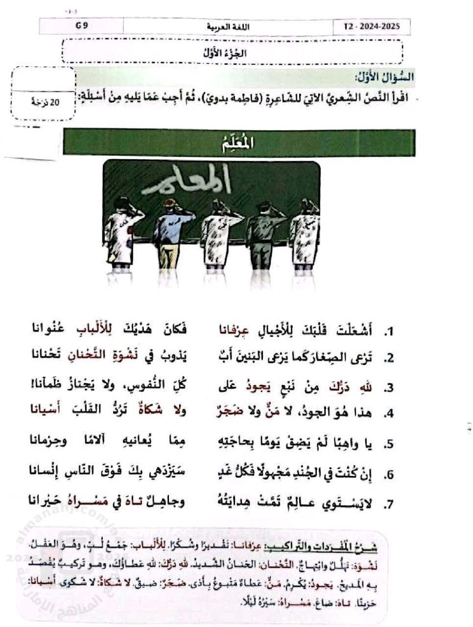 | أنت هنا: موقع المناهج ⇦ المناهج الإماراتية ⇦ الصف التاسع ⇦ لغة عربية ⇦ الفصل الثاني ⇦ الامتحان النهائي |