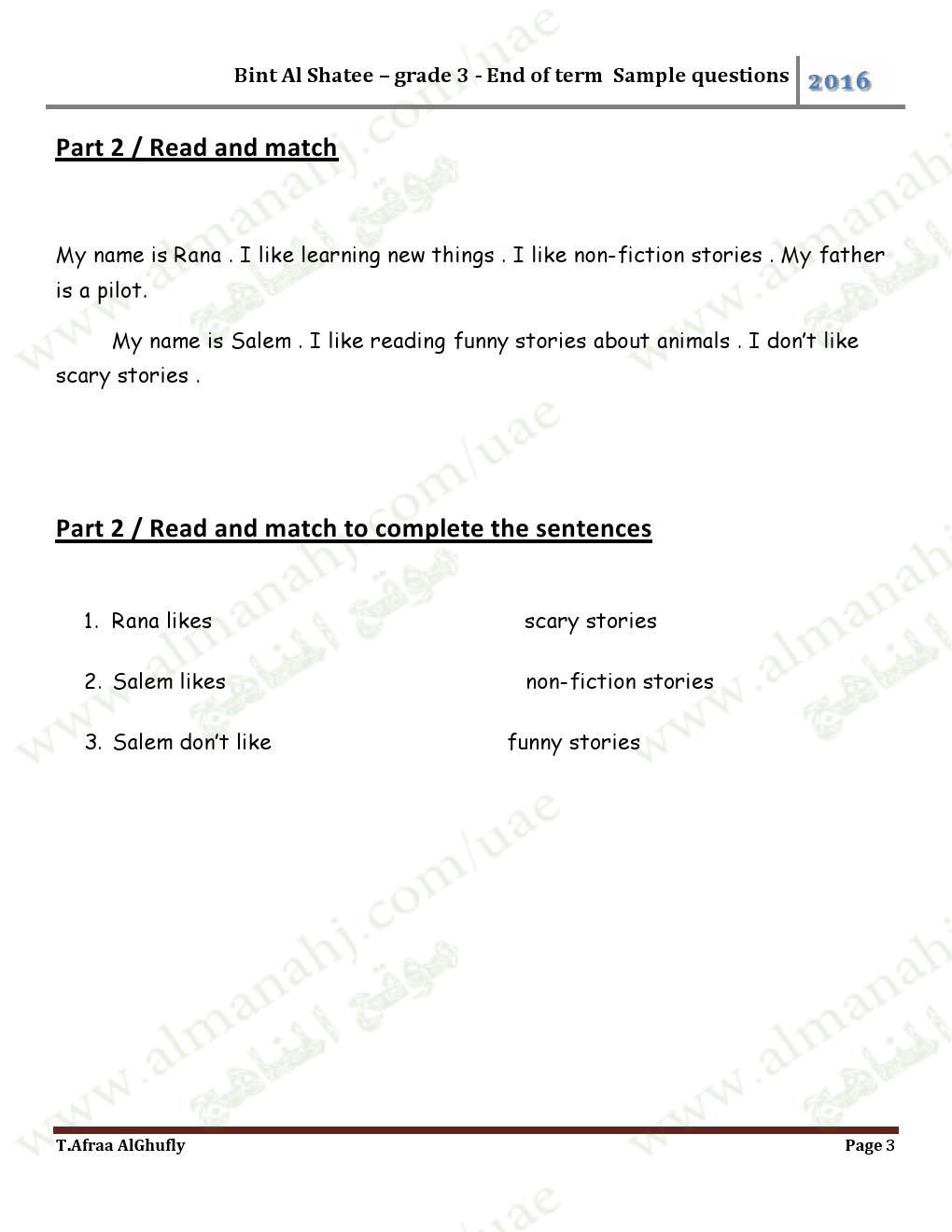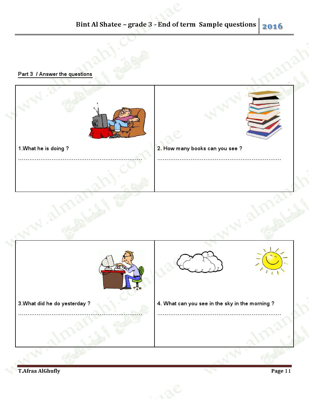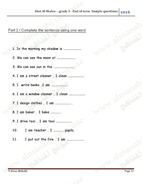معلومات الملف: الصف الثالث, الفصل الأول, لغة انكليزية, 2017-2018, أوراق عمل كمراجعة نهائية لامتحان نهاية الفصل الأول | ||