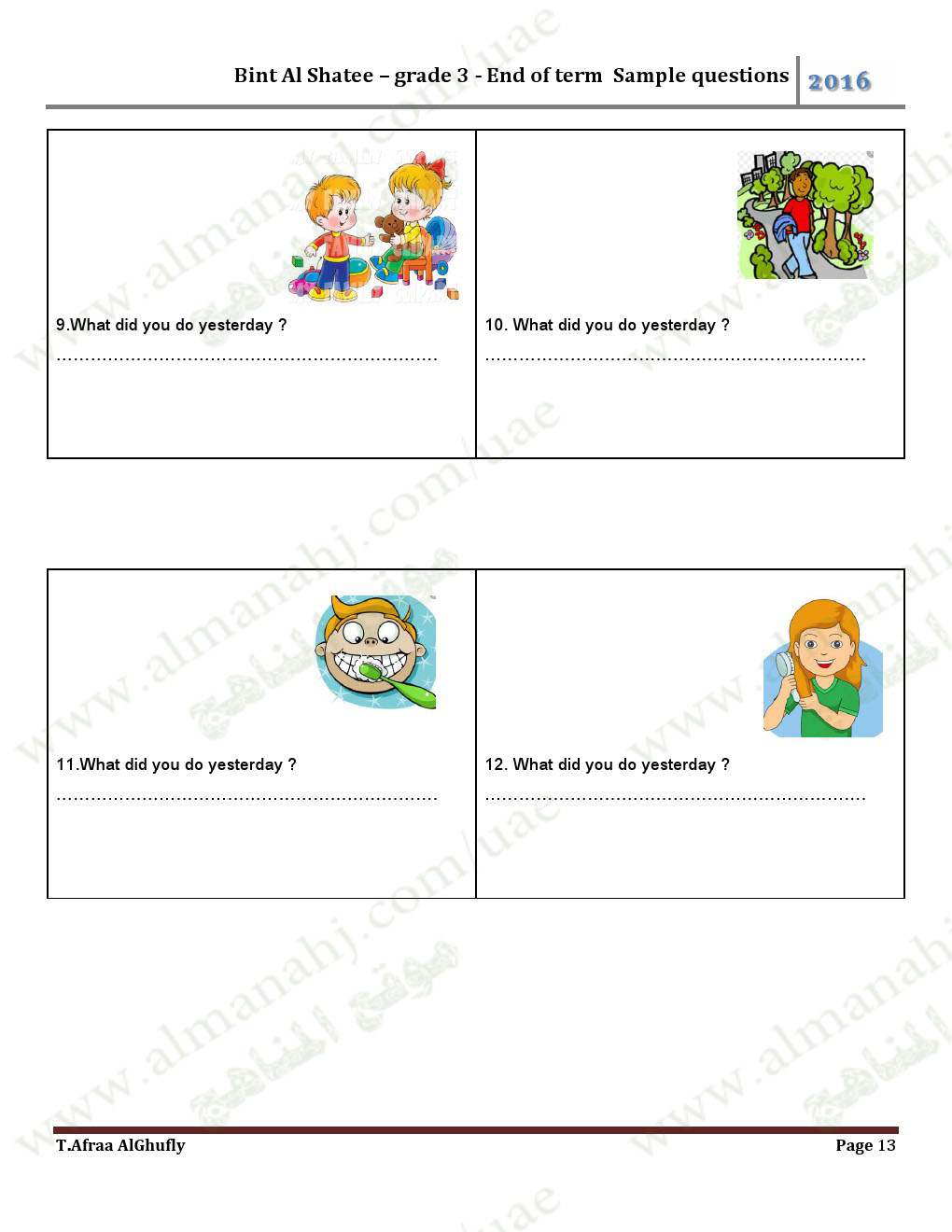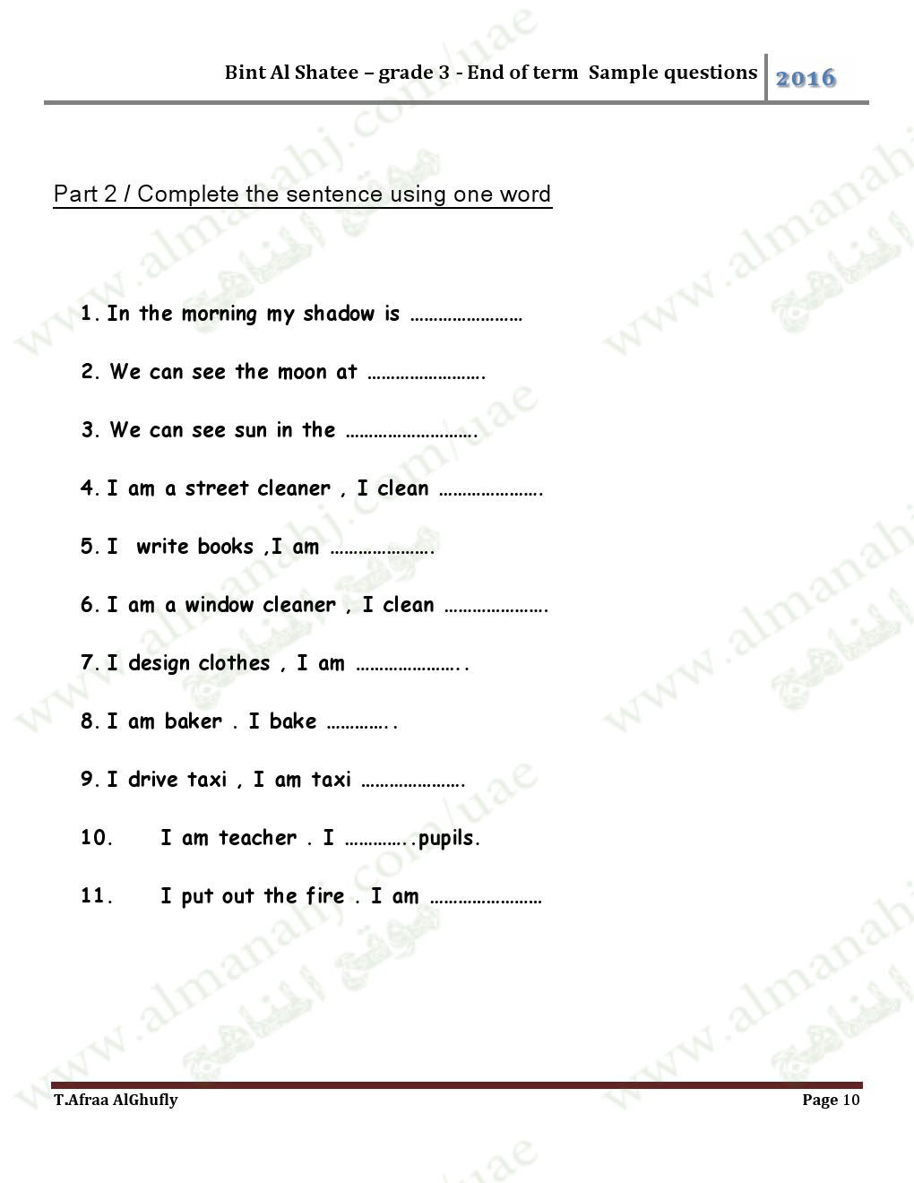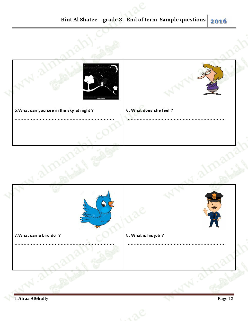 معلومات الملف: الصف الثالث, الفصل الأول, لغة انكليزية, 2017-2018, أوراق عمل كمراجعة نهائية لامتحان نهاية الفصل الأول | ||
