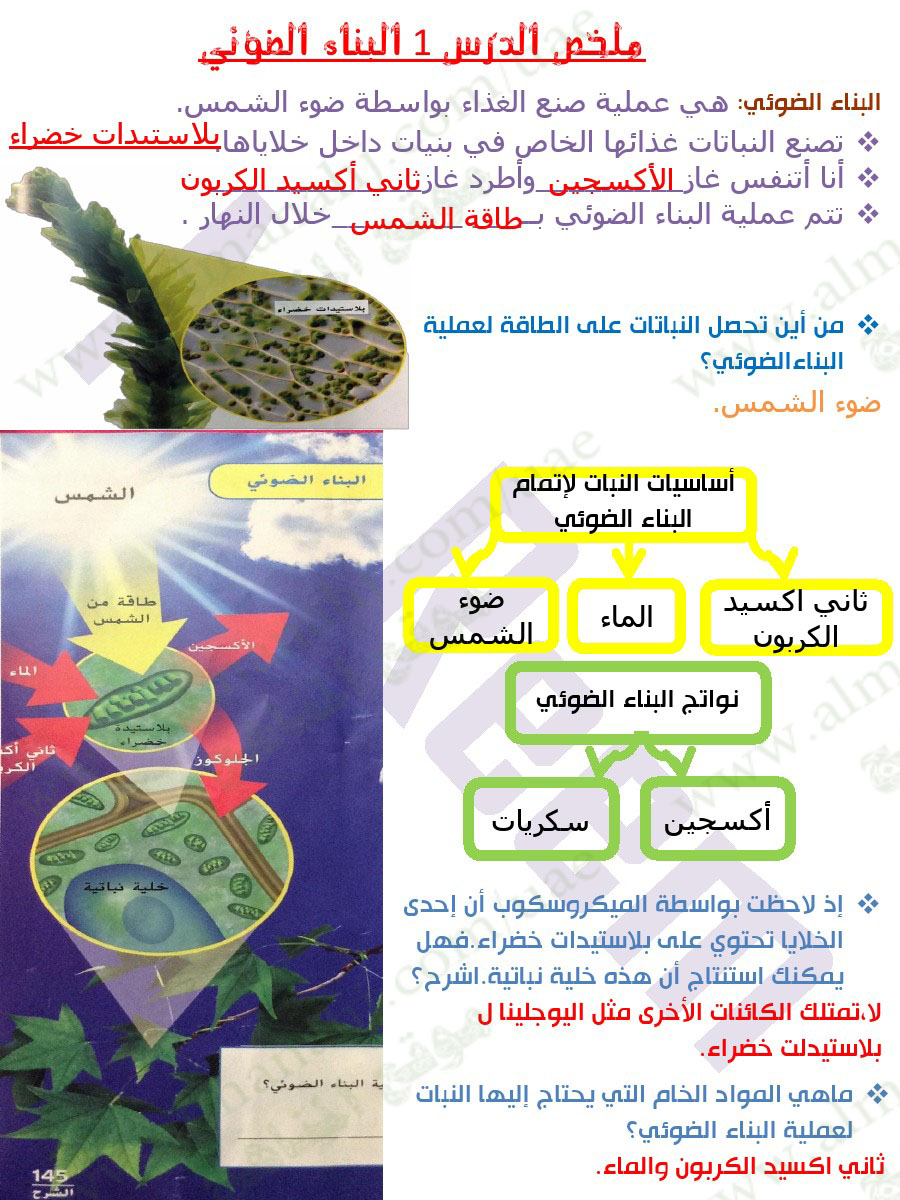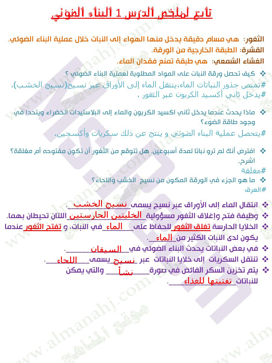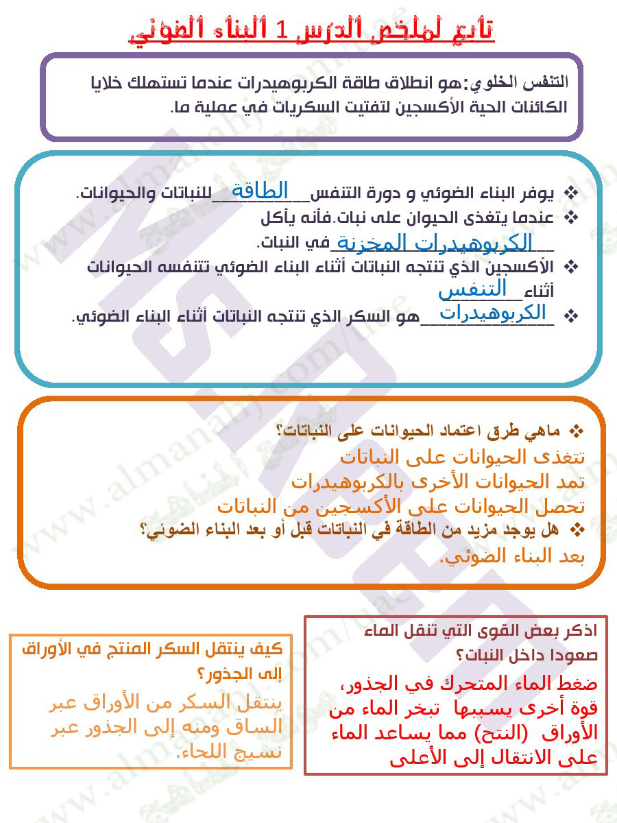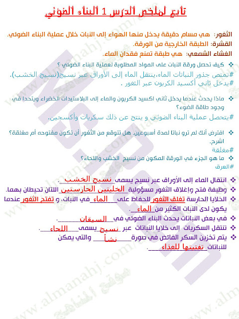 معلومات الملف: الصف الخامس, الفصل الأول, علوم, 2017-2018, تلخيص درس البناء الضوئي | ||