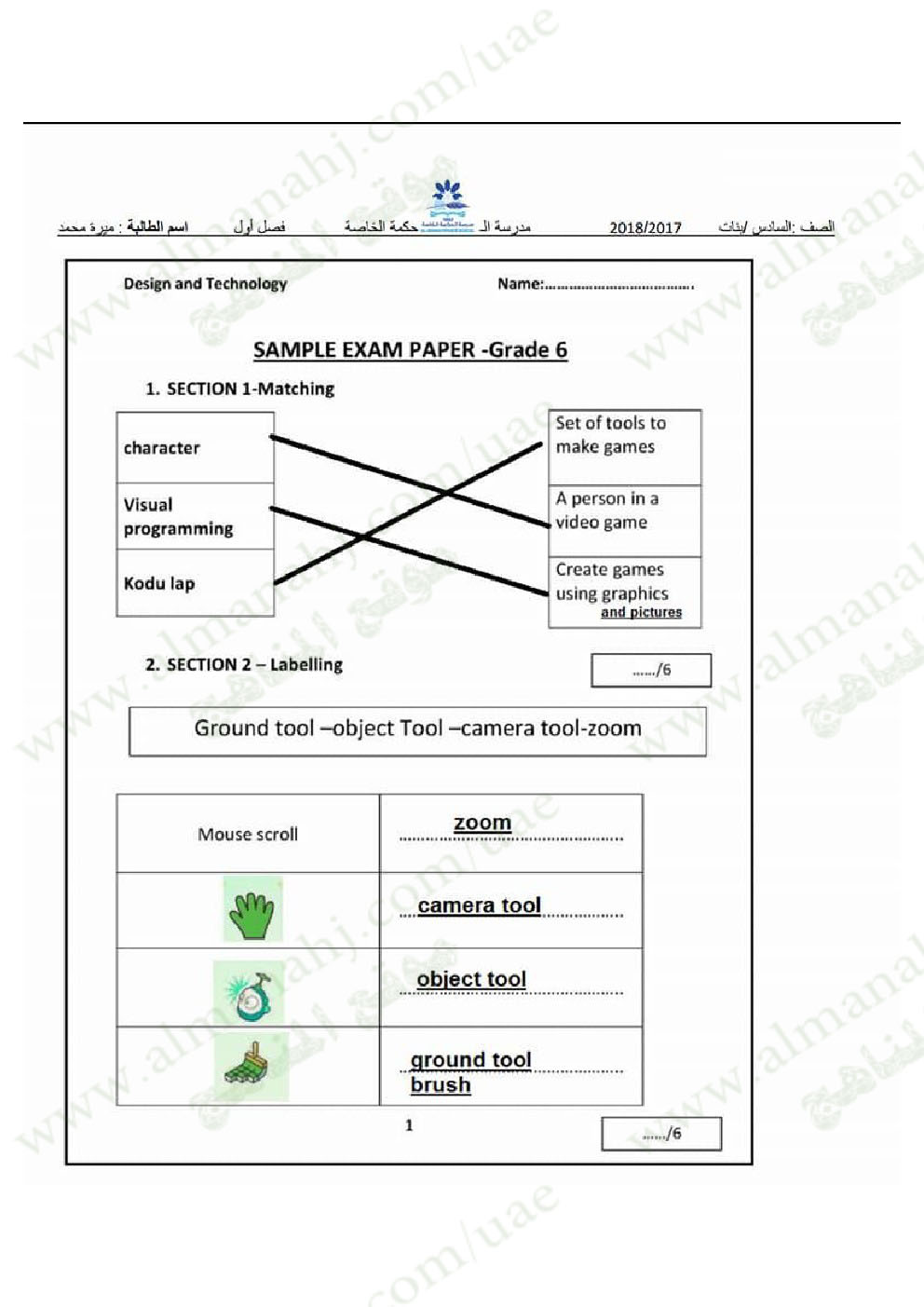 معلومات الملف: الصف السادس, الفصل الأول, تصميم, 2017-2018, مراجعة شاملة لامتحان نهاية الفصل الاول | |||
