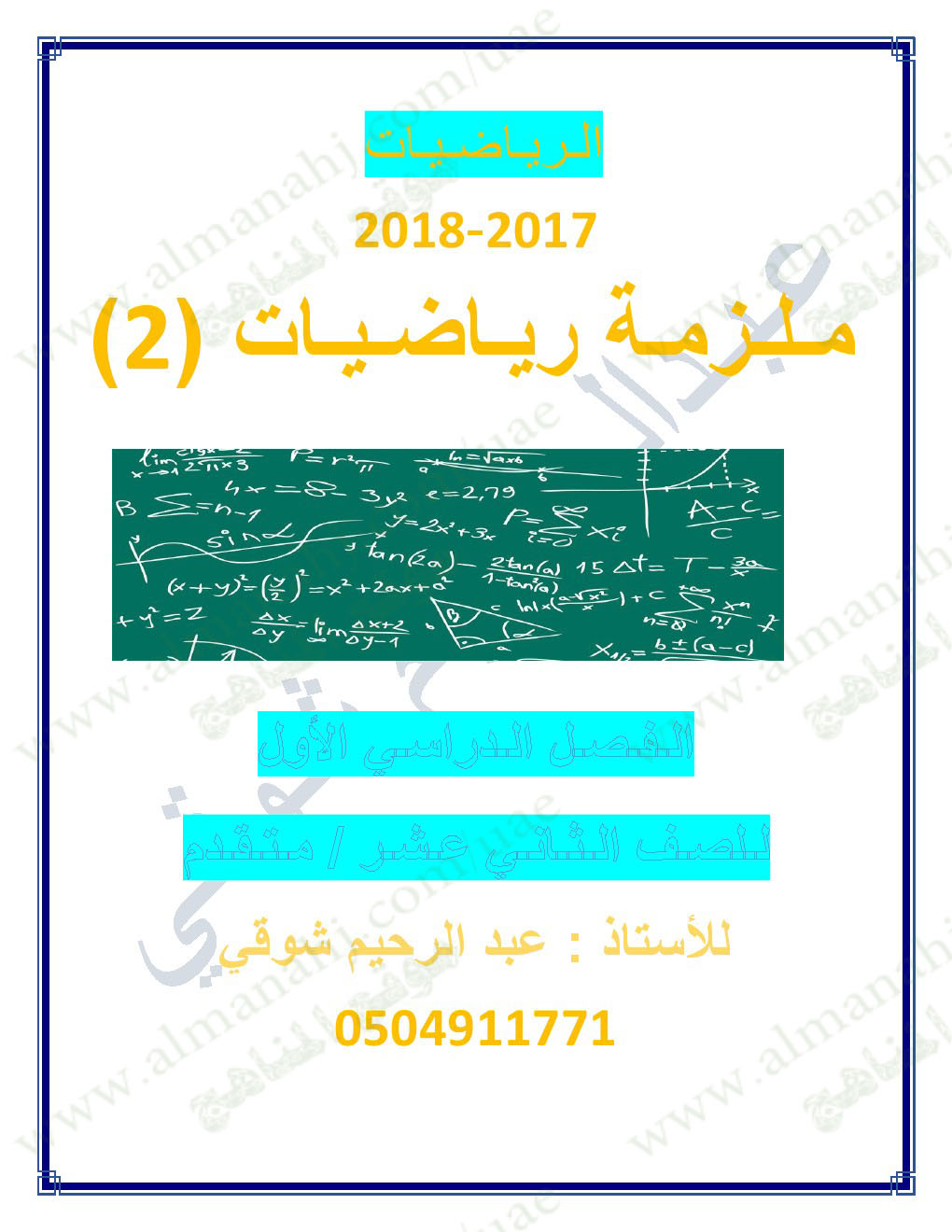 معلومات الملف: الصف الثاني عشر المتقدم, الفصل الأول, رياضيات, 2017-2018, مذكرة شاملة للاشتقاق والنهايات الاتصال | |||