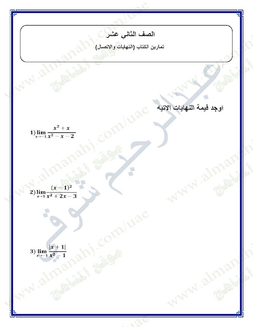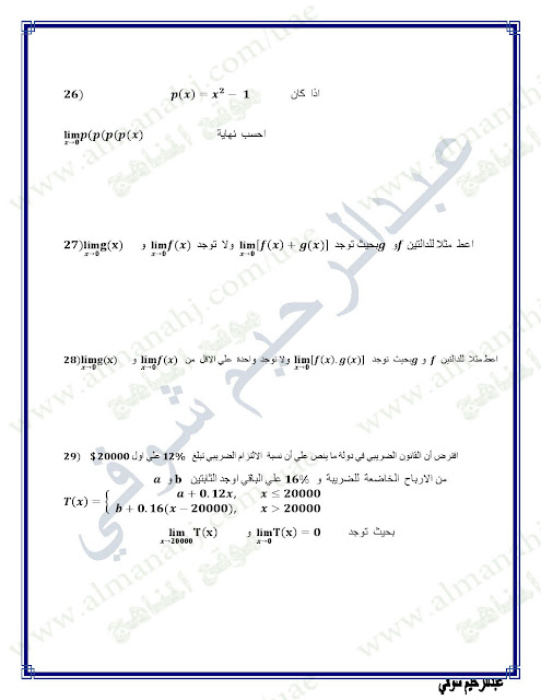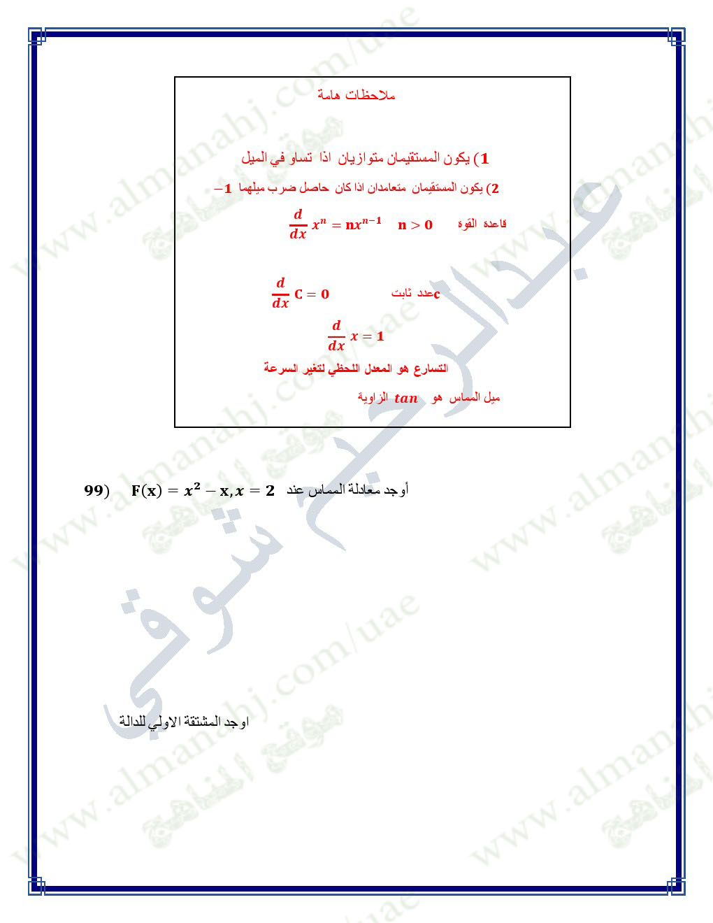 | اضغط هنا لتحميل وعرض ( مذكرة شاملة للاشتقاق والنهايات الاتصال ) | |||