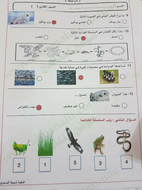 8. الصف السادس, رياضيات, أسئلة اختبار الوحدة السادسة التعابير