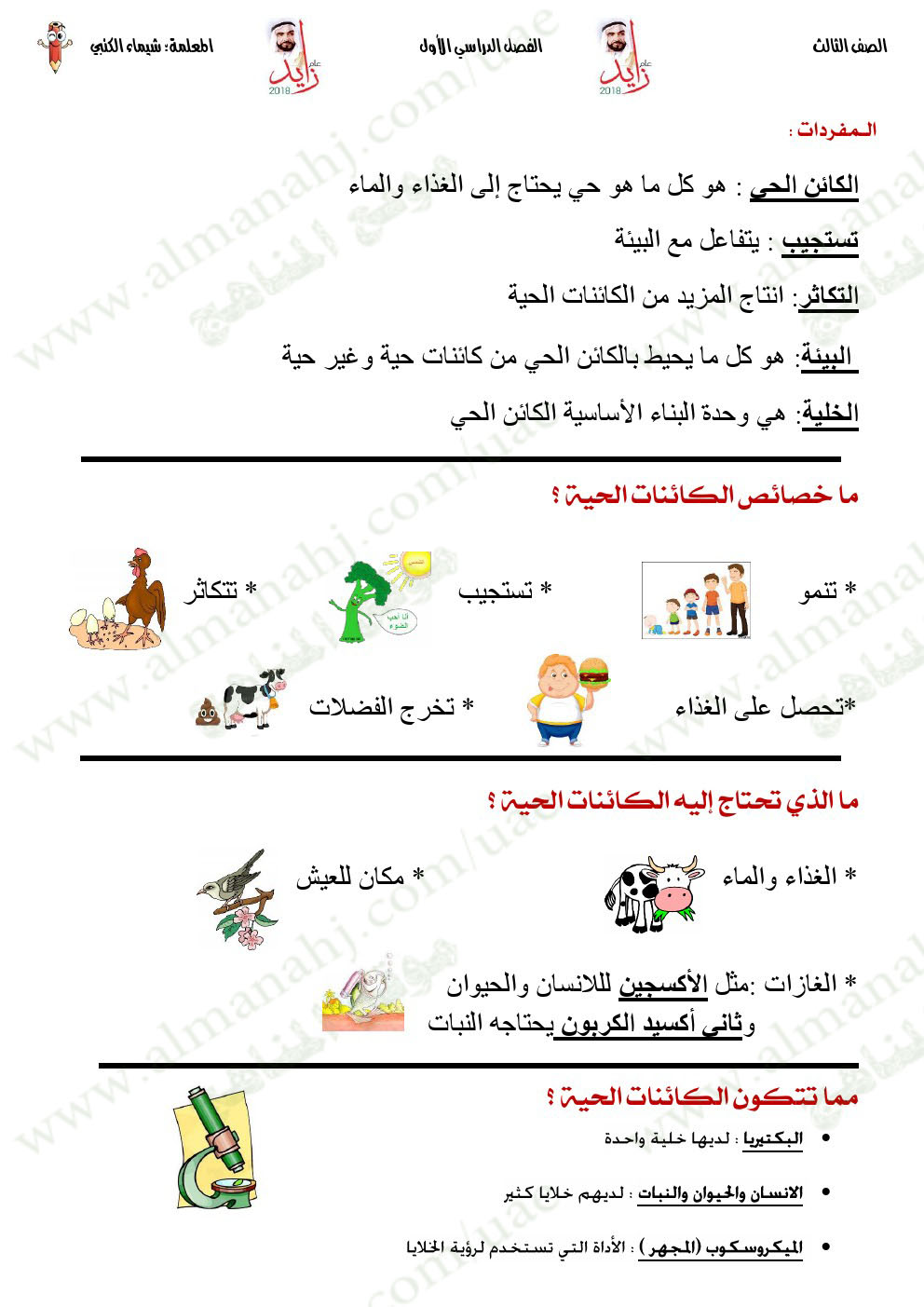 معلومات الملف: الصف الثالث, الفصل الأول, علوم, 2017-2018, ملخص لامتحان نهاية الفصل  | |||