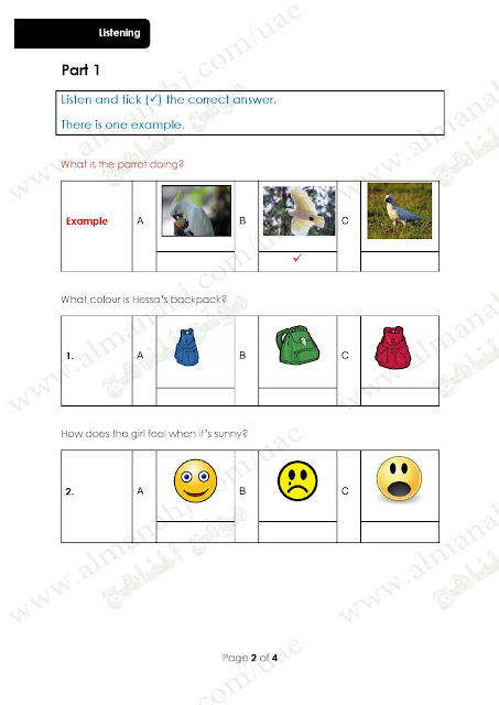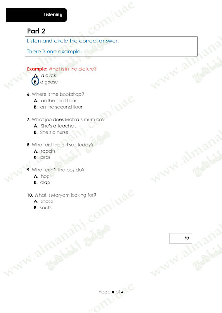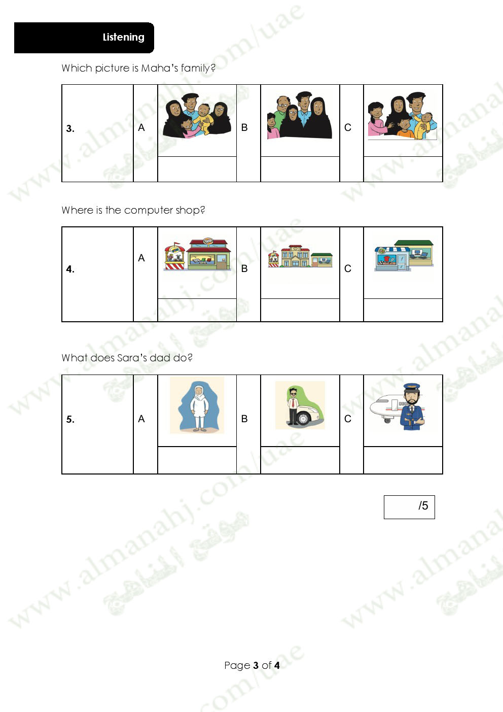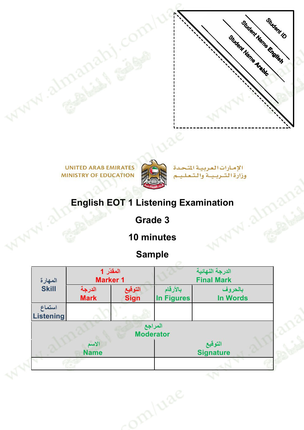 معلومات الملف: الصف الثالث, الفصل الأول, لغة انكليزية, 2017-2018, النموذج الوزاري لامتحان الاستماع | |||