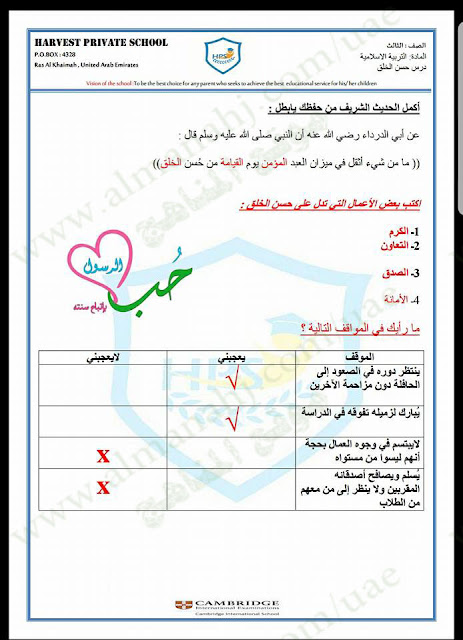 تنويه: المناهج الإماراتية هو موقع مجاني وغير رسمي ولا يتطلب اشتراك لتحميل الملفات، لذلك يرجى عدم دفع أي مبلغ أو الاشتراك من أجل تحميل الملفات. | |