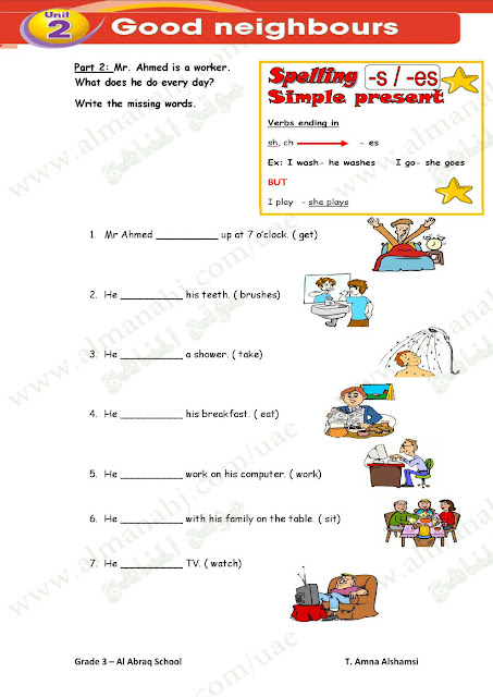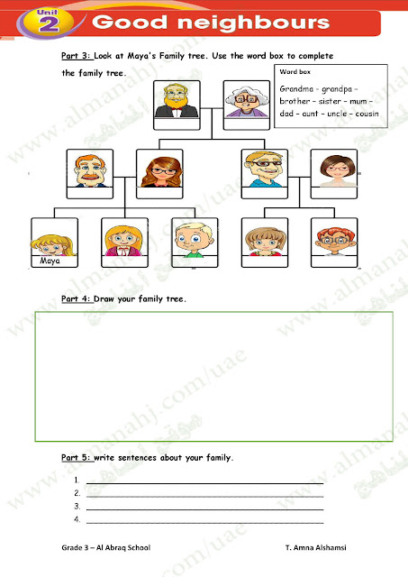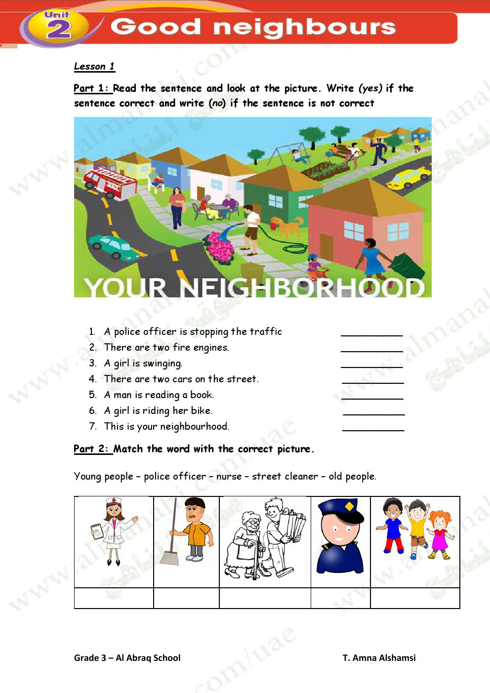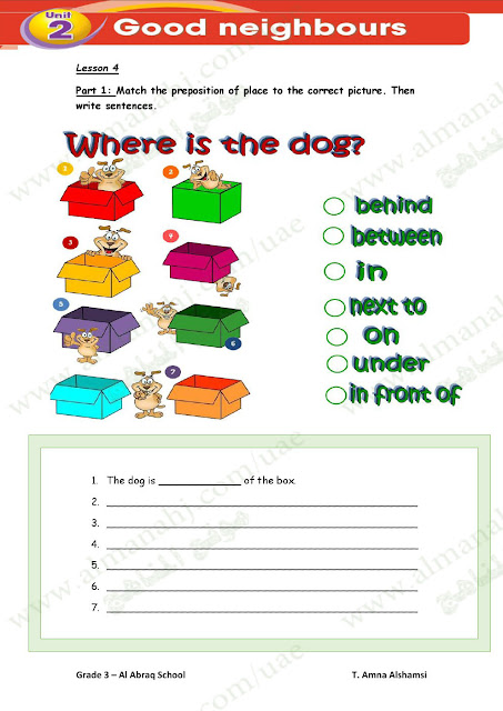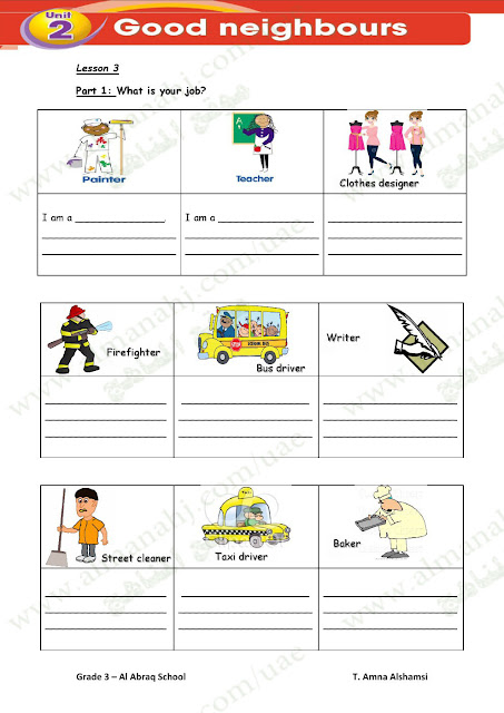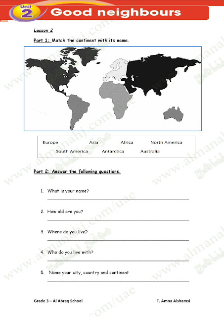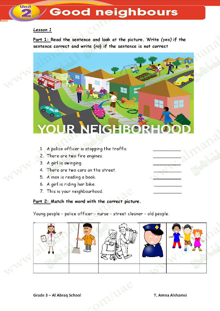 معلومات الملف: الصف الثالث, الفصل الأول, لغة انكليزية, 2017-2018, مذكرة في الوحدة الثانية Good Neighbourse | ||