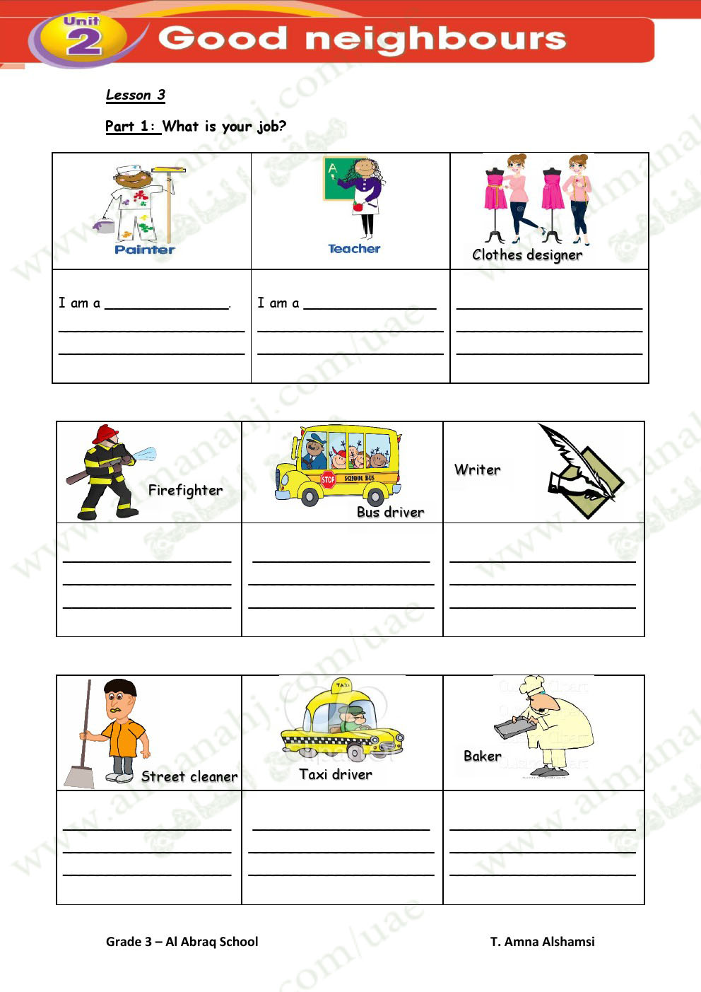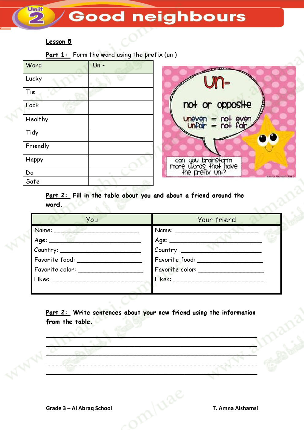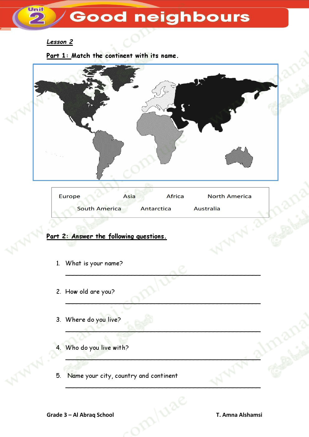 معلومات الملف: الصف الثالث, الفصل الأول, لغة انكليزية, 2017-2018, مذكرة في الوحدة الثانية Good Neighbourse | ||