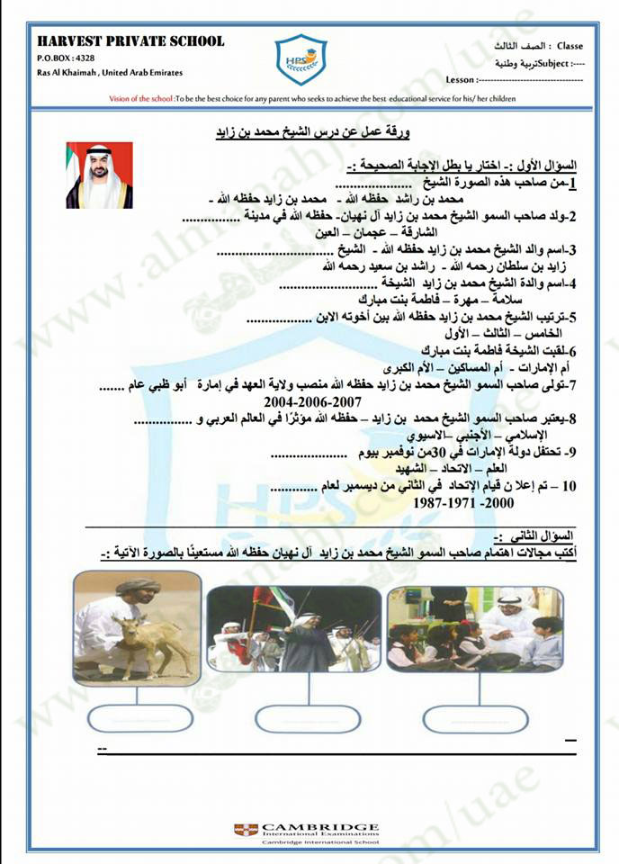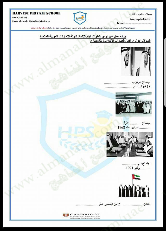 ورقتي عمل عن درسي: الشيخ محمد بن زايد وخطوات فيام دولة الاتحاد مع الحل | ||