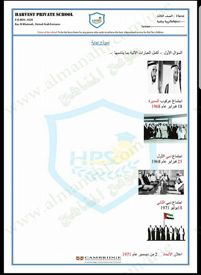 | ورقتي عمل عن درسي: الشيخ محمد بن زايد وخطوات فيام دولة الاتحاد مع الحل | ||