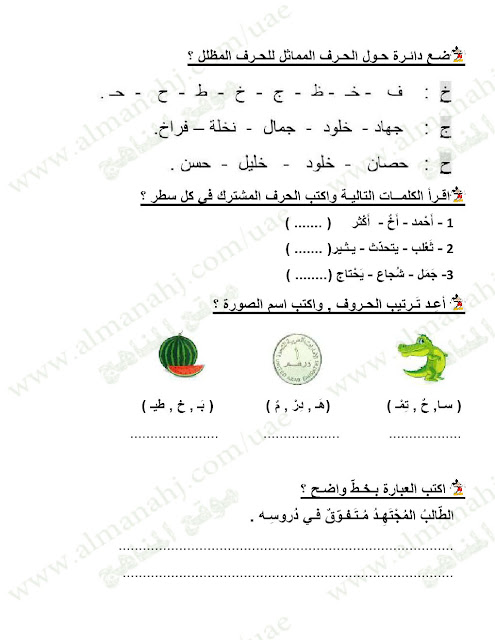 أكثر خمس كلمات زيارة اليوم بحسب: لغة عربية - الصف الأول - الفصل الأول | |