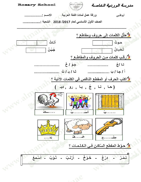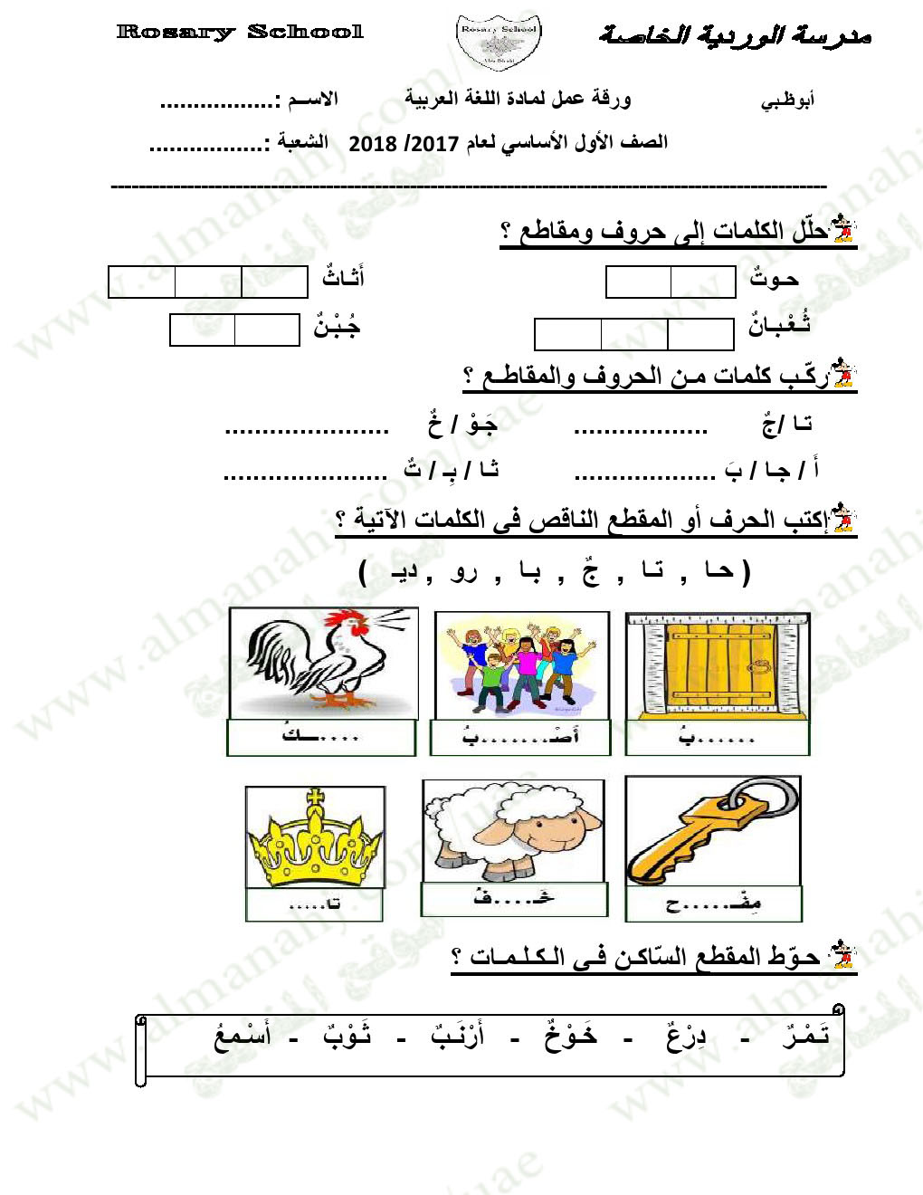 معلومات الملف: الصف الأول, الفصل الأول, لغة عربية, 2017-2018, مراجعة نهائية قبل الامتحان | |||