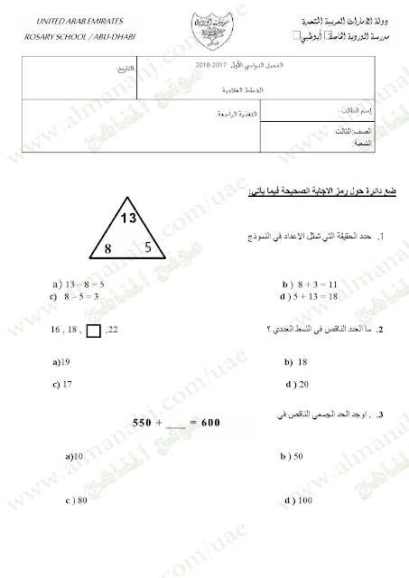 معلومات الملف: الصف الثالث, الفصل الأول, رياضيات, 2017-2018, خطة علاجية لامتحان نهاية الفصل | |||