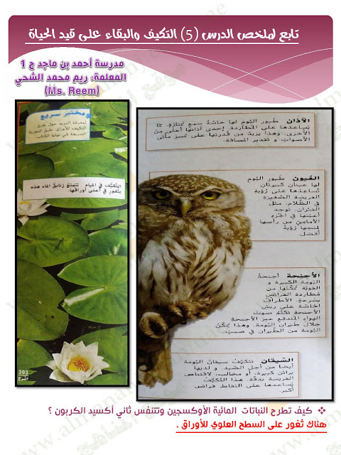 معلومات الملف: الصف الخامس, الفصل الأول, علوم, 2017-2018, ملخص الدرس الخامس- التكيف والبقاء على قبد الحياة | |||
