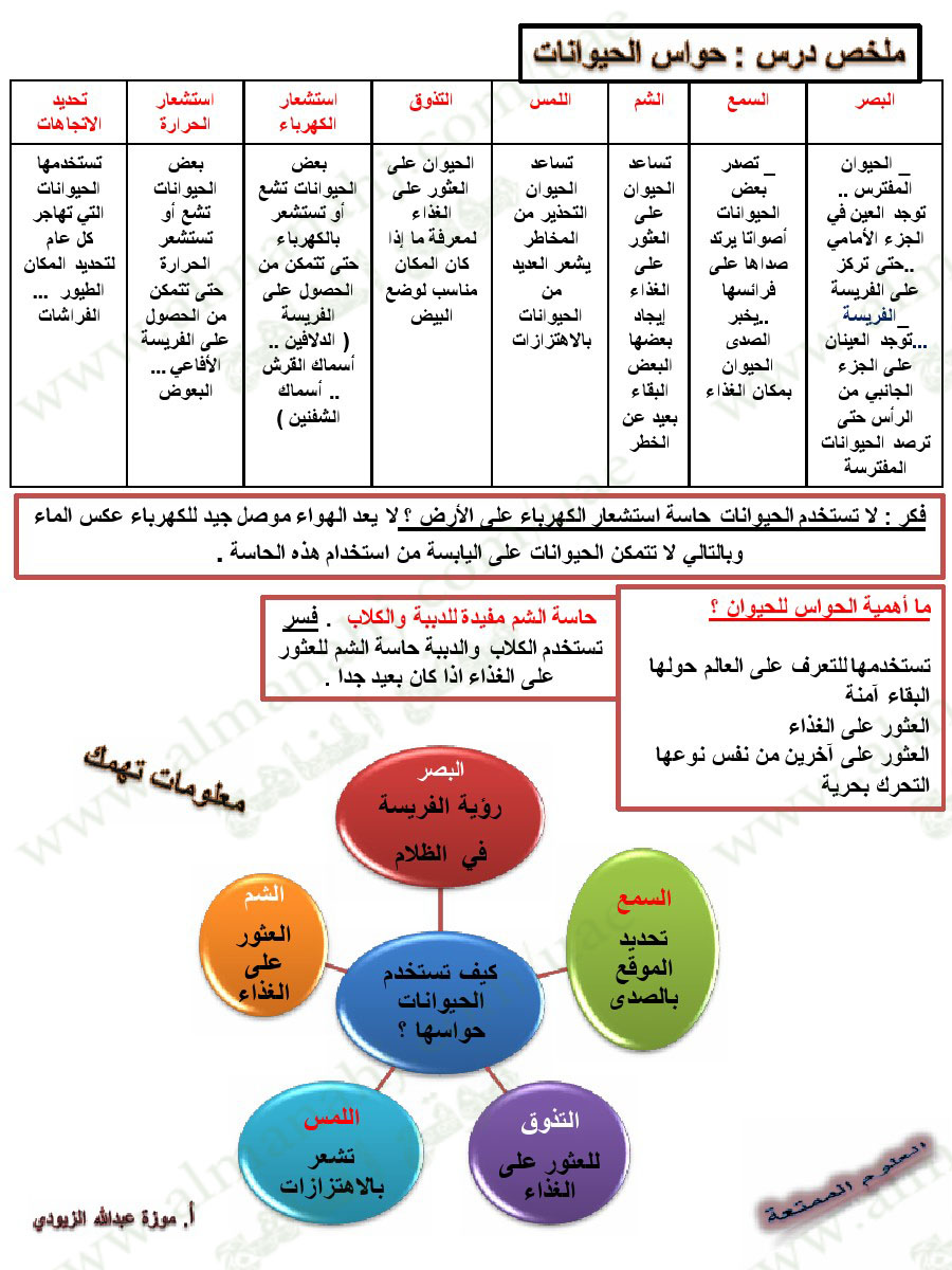 | رابط تحميل وعرض ( ملخصات وأوراق عمل الدروس التغير بمرور الزمن وحواس الحيوانات وحواس الحيوانات والنباتات وما يحيط بها ) | |||