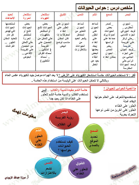 | اضغط هنا لتحميل وعرض ( ملخصات وأوراق عمل الدروس التغير بمرور الزمن وحواس الحيوانات وحواس الحيوانات والنباتات وما يحيط بها ) | |||