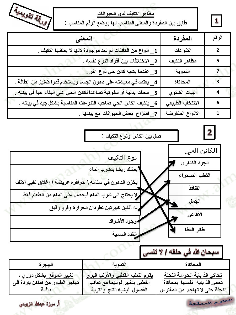 | ملخصات وأوراق عمل الدروس التغير بمرور الزمن وحواس الحيوانات وحواس الحيوانات والنباتات وما يحيط بها | |||