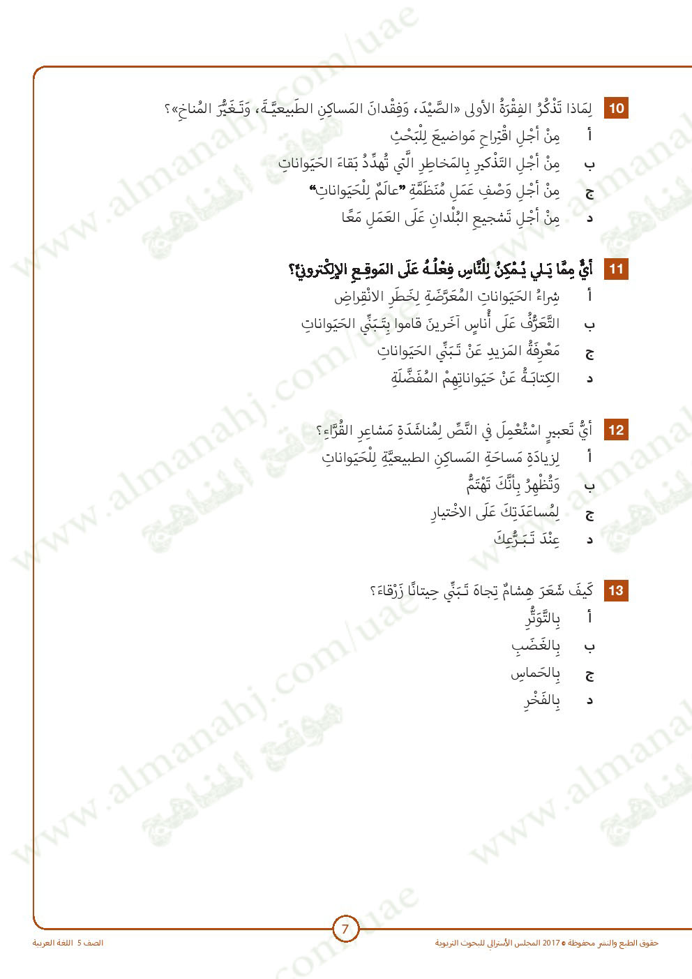معلومات الملف: الصف الخامس, الفصل الأول, لغة عربية, 2017-2018, اختبار BIT تدريبي مع الاجابة | |||