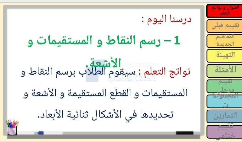 رابط تحميل وعرض ( عرض بوربوينت حل درس رسم النقاط والمستقيمات والأشعة ) | |||
