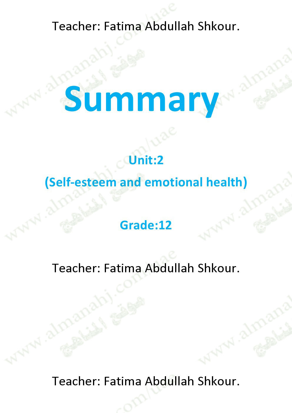 | معلومات الملف: الصف الثاني عشر, الفصل الأول, علوم صحية, 2017-2018, تلخيص الوحدة الثانية | |||