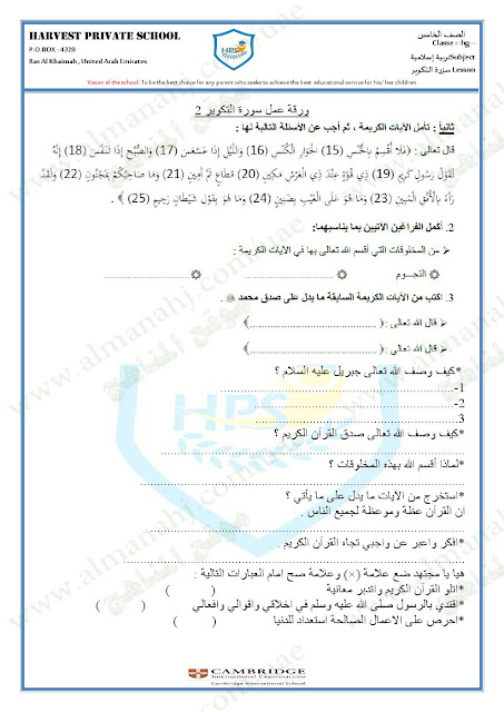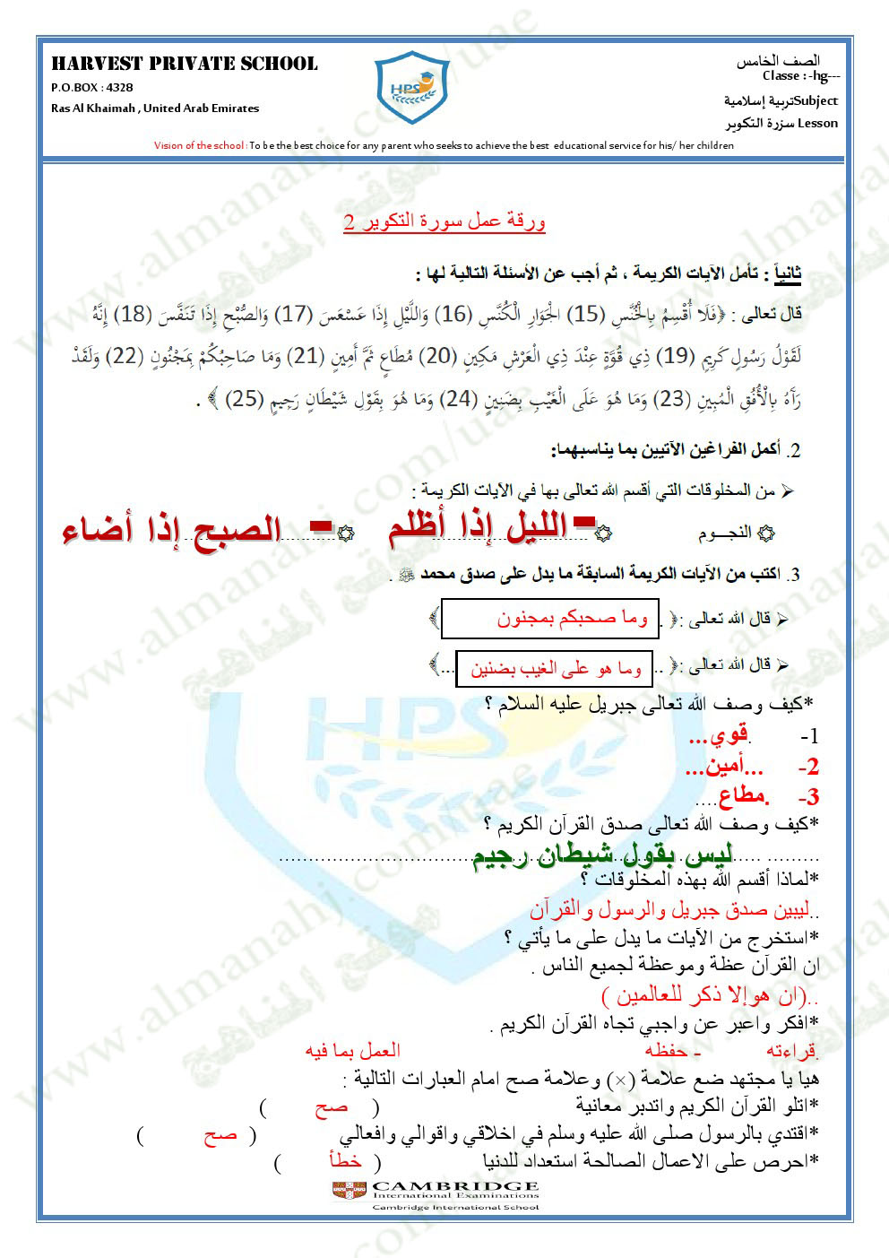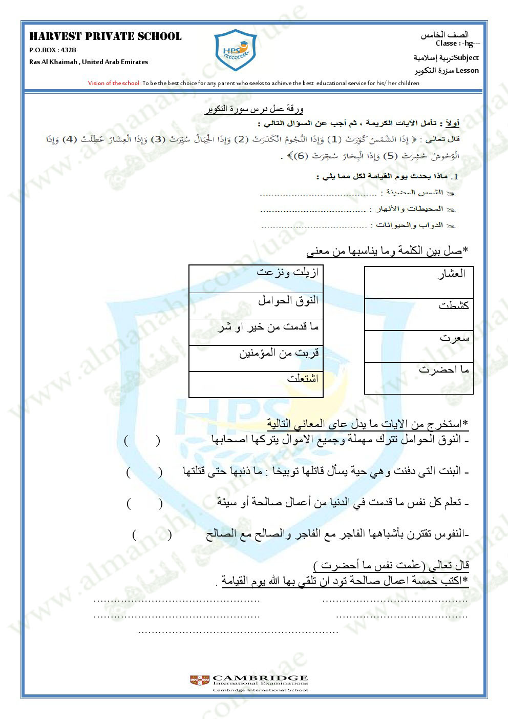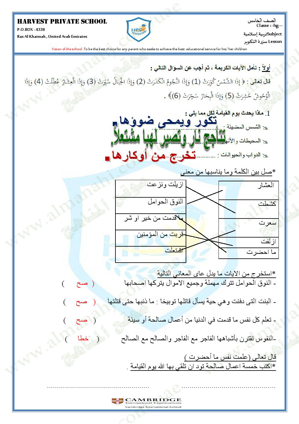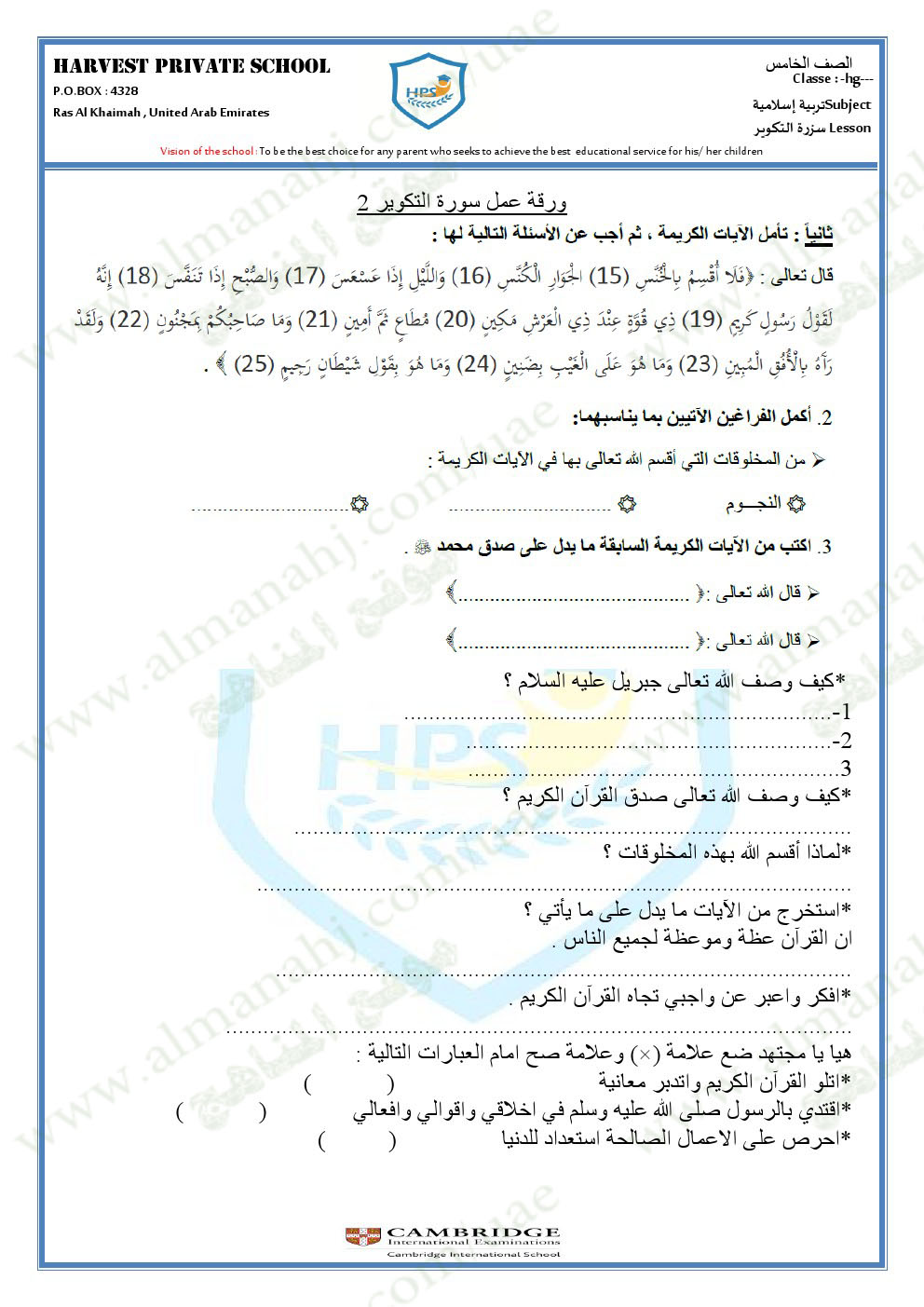 الصف الخامس, الفصل الأول, تربية اسلامية, 2017-2018, تدريبات سورة التكوير للتحميل اتبع الرابط التالي" http://aefiles.website/do.php?id=830">http://aefiles.website/do.php?id=830