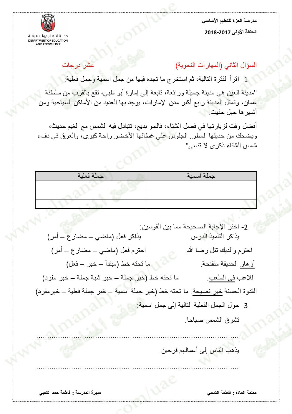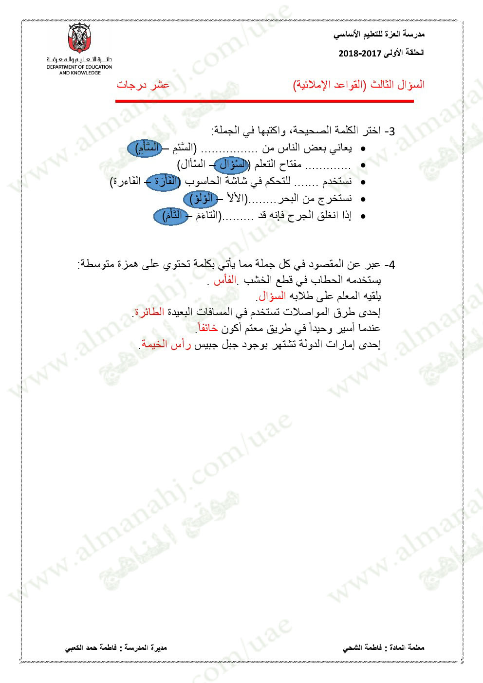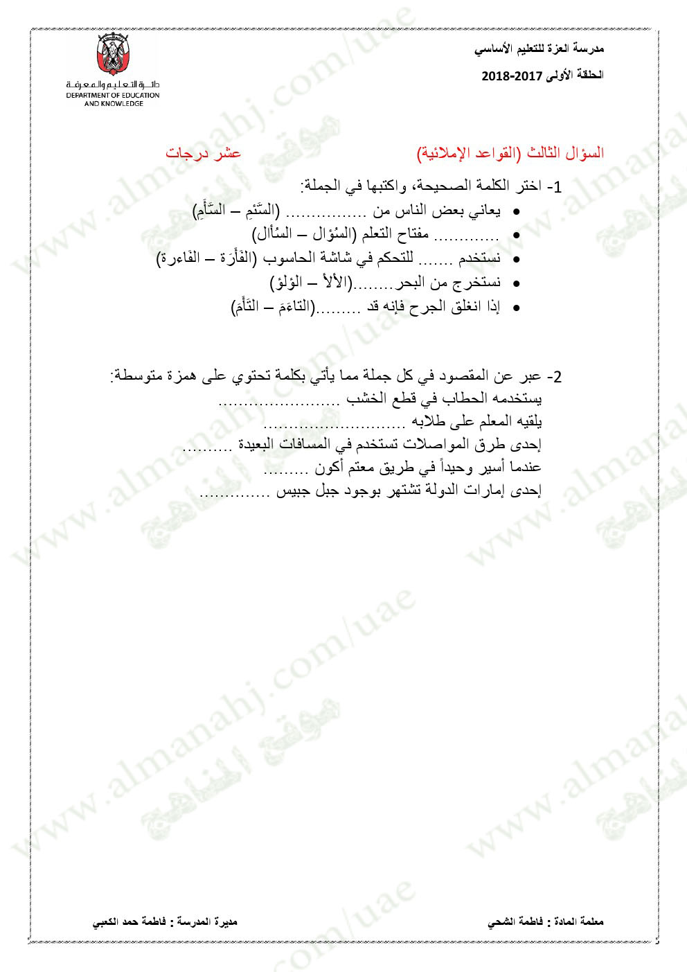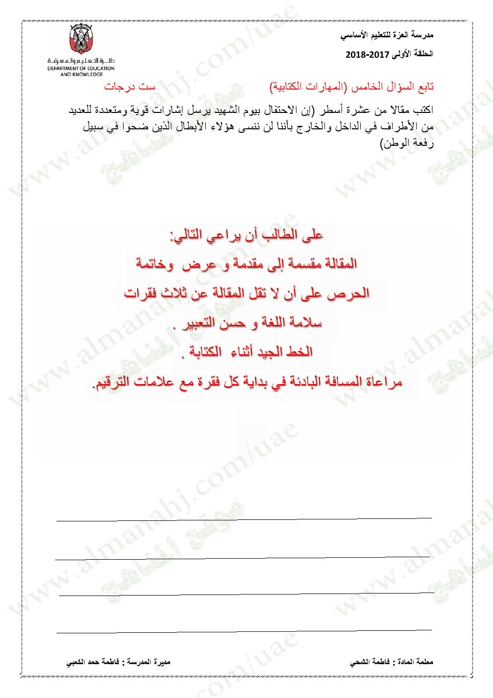 معلومات الملف: الصف الخامس, الفصل الأول, لغة عربية, 2017-2018,نموذجاختبار لغة عربية لامتحان نهاية الفصل الاول | |||