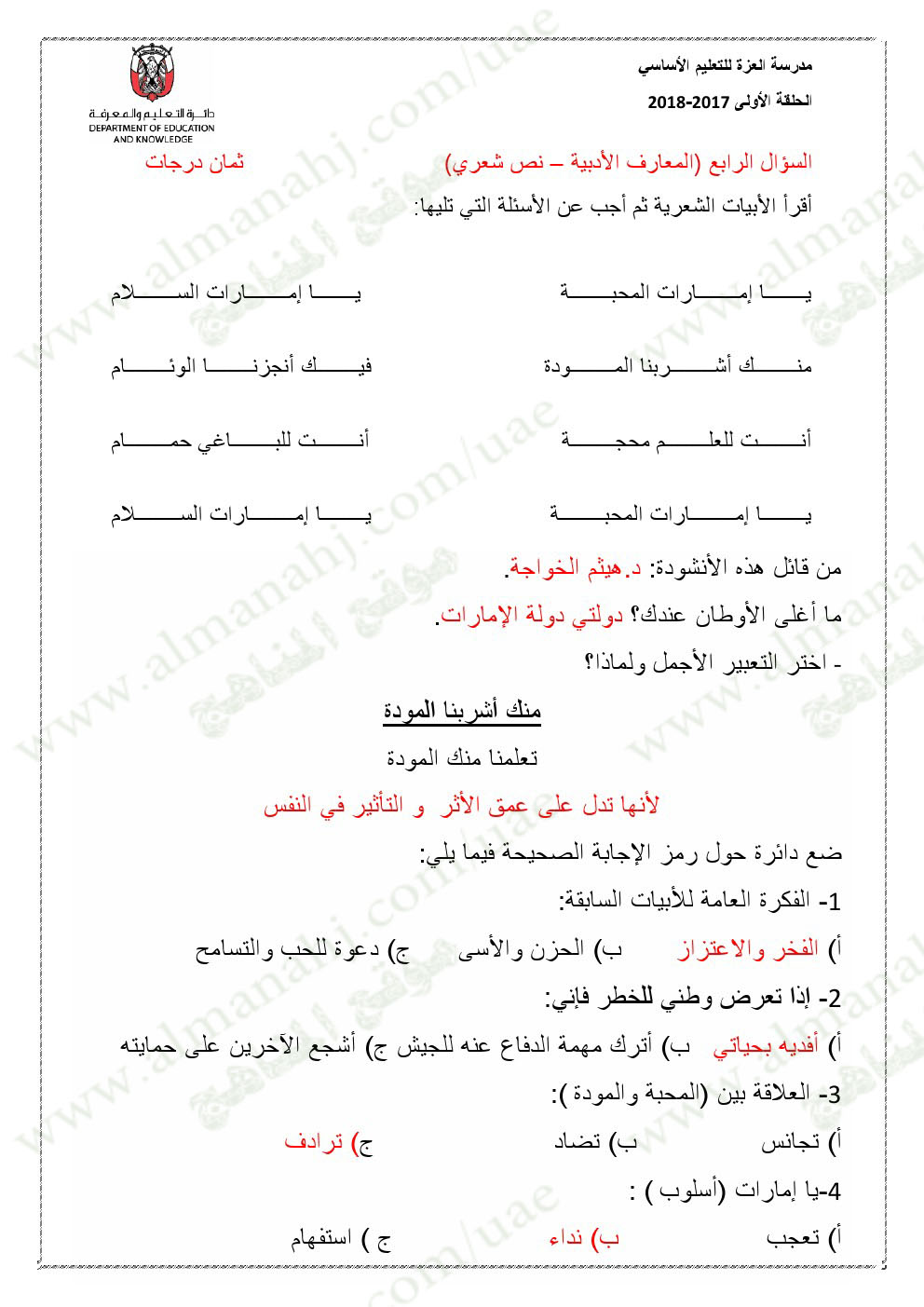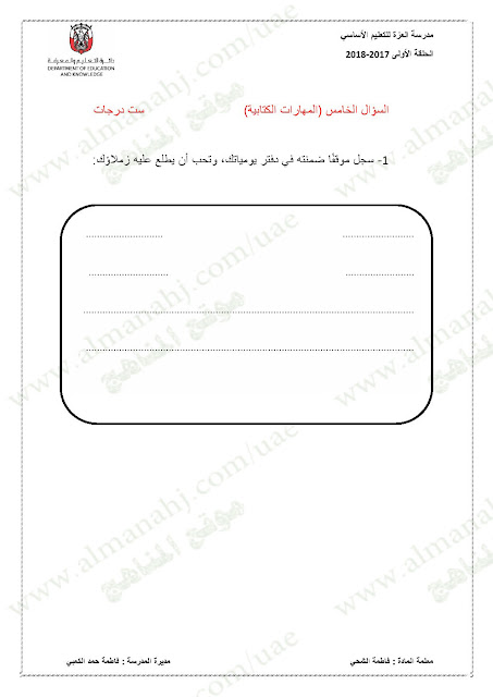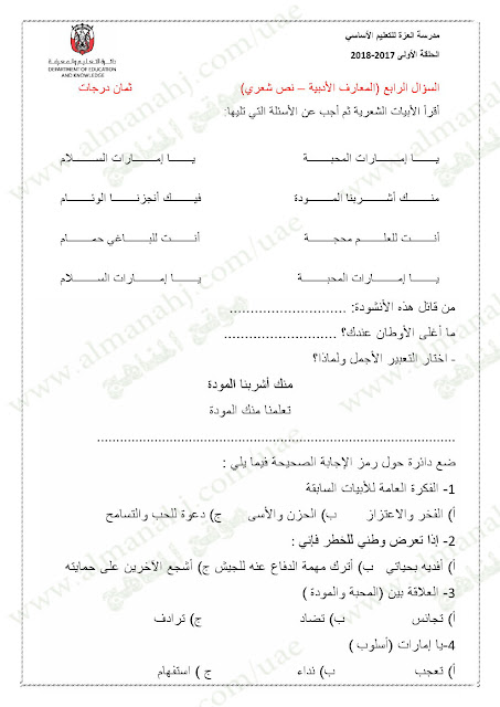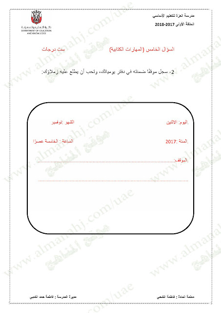 تنويه: المناهج الإماراتية هو موقع مجاني وغير رسمي ولا يتطلب اشتراك لتحميل الملفات، لذلك يرجى عدم دفع أي مبلغ أو الاشتراك من أجل تحميل الملفات. | |