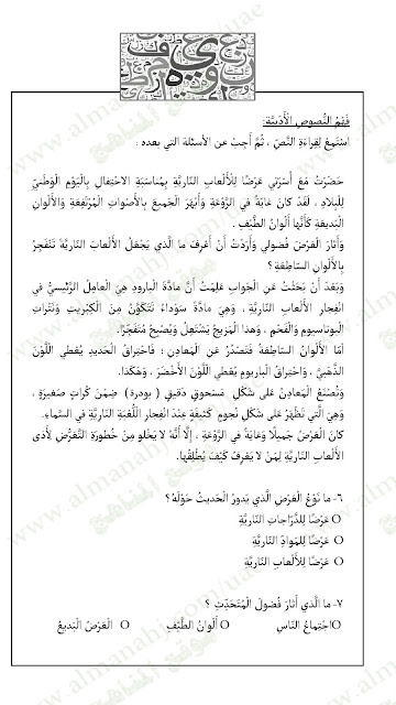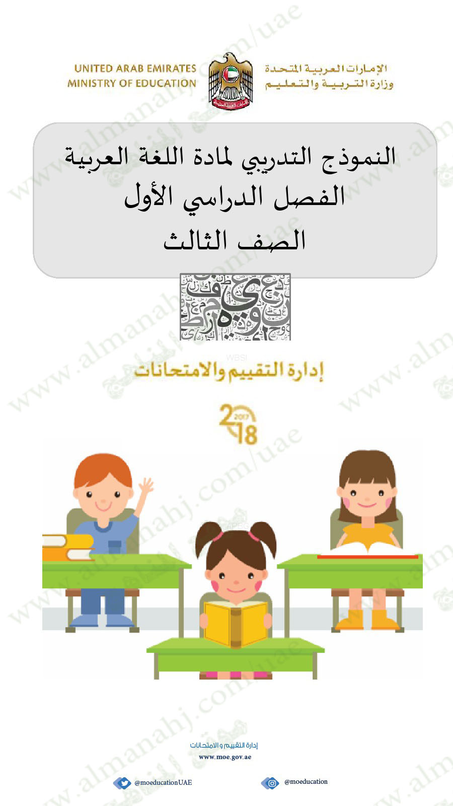 الصف الثالث, الفصل الأول, لغة عربية, 2017-2018, النموذج التدريبي الرسمي لامتحان نهاية الفصل الاول مع الاجابة