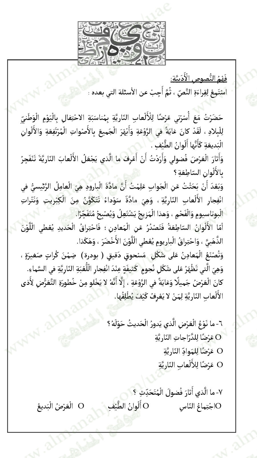 | تنويه: المناهج الإماراتية هو موقع مجاني وغير رسمي ولا يتطلب اشتراك لتحميل الملفات، لذلك يرجى عدم دفع أي مبلغ أو الاشتراك من أجل تحميل الملفات. | |