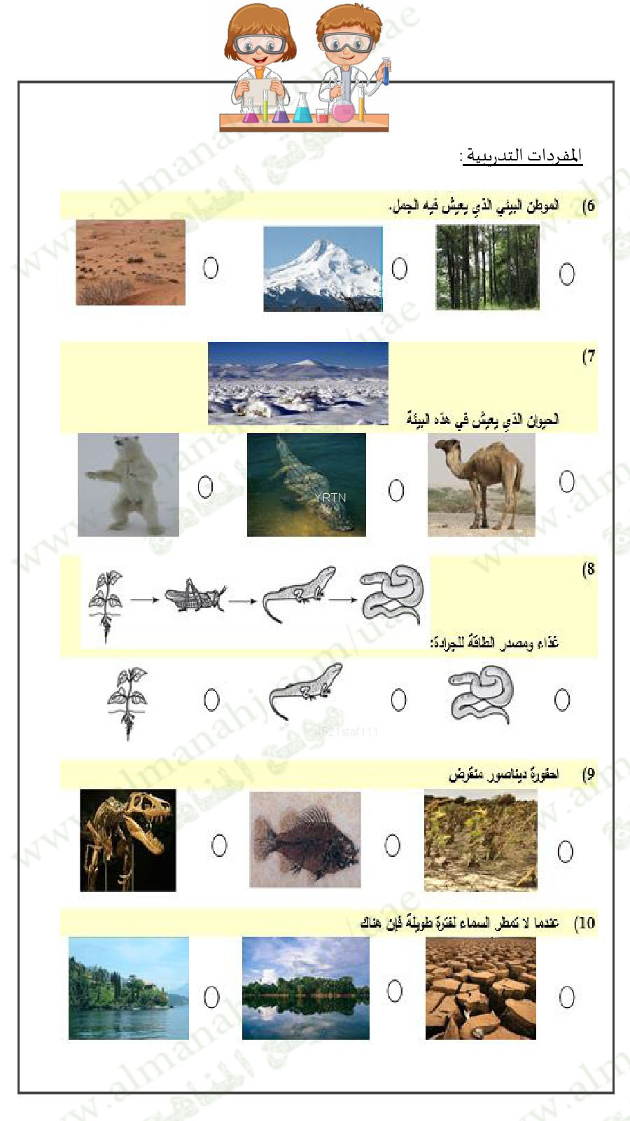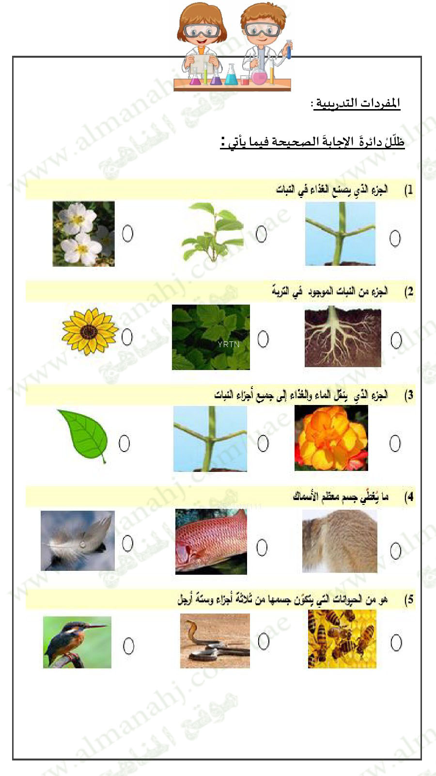 الصف الثاني, الفصل الأول, علوم, 2017-2018, النموذج التدريبي الرسمي الوزاري لامتحان نهاية الفصل الاول