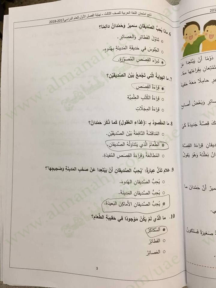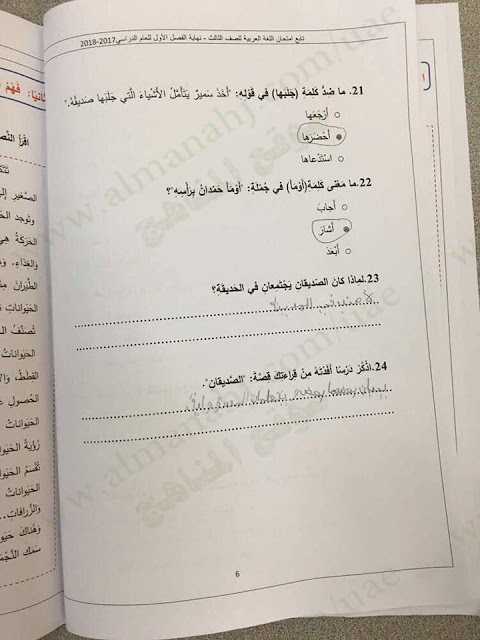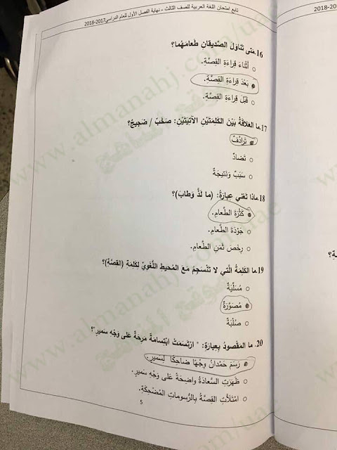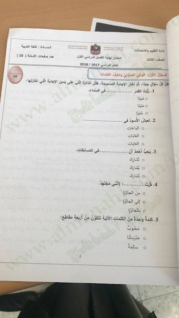معلومات الملف: الصف الثالث, الفصل الأول, لغة عربية, 2017-2018, الأسئلة الوزارية لامتحان نهاية الفصل الاول | |||
