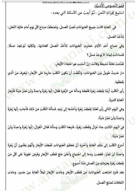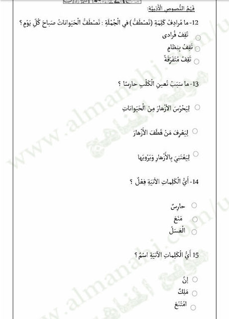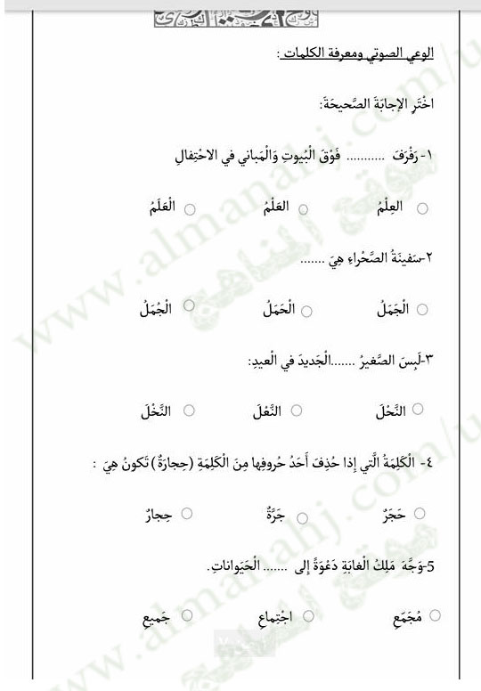 الصف الثاني, الفصل الأول, لغة عربية, 2017-2018, النموذج التدريبي الرسمي لامتحان نهاية الفصل الأول |
