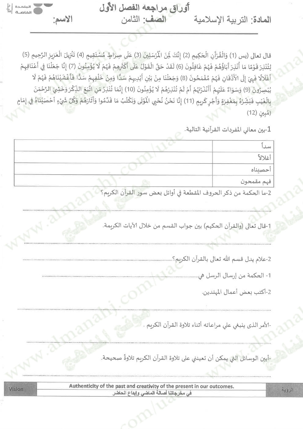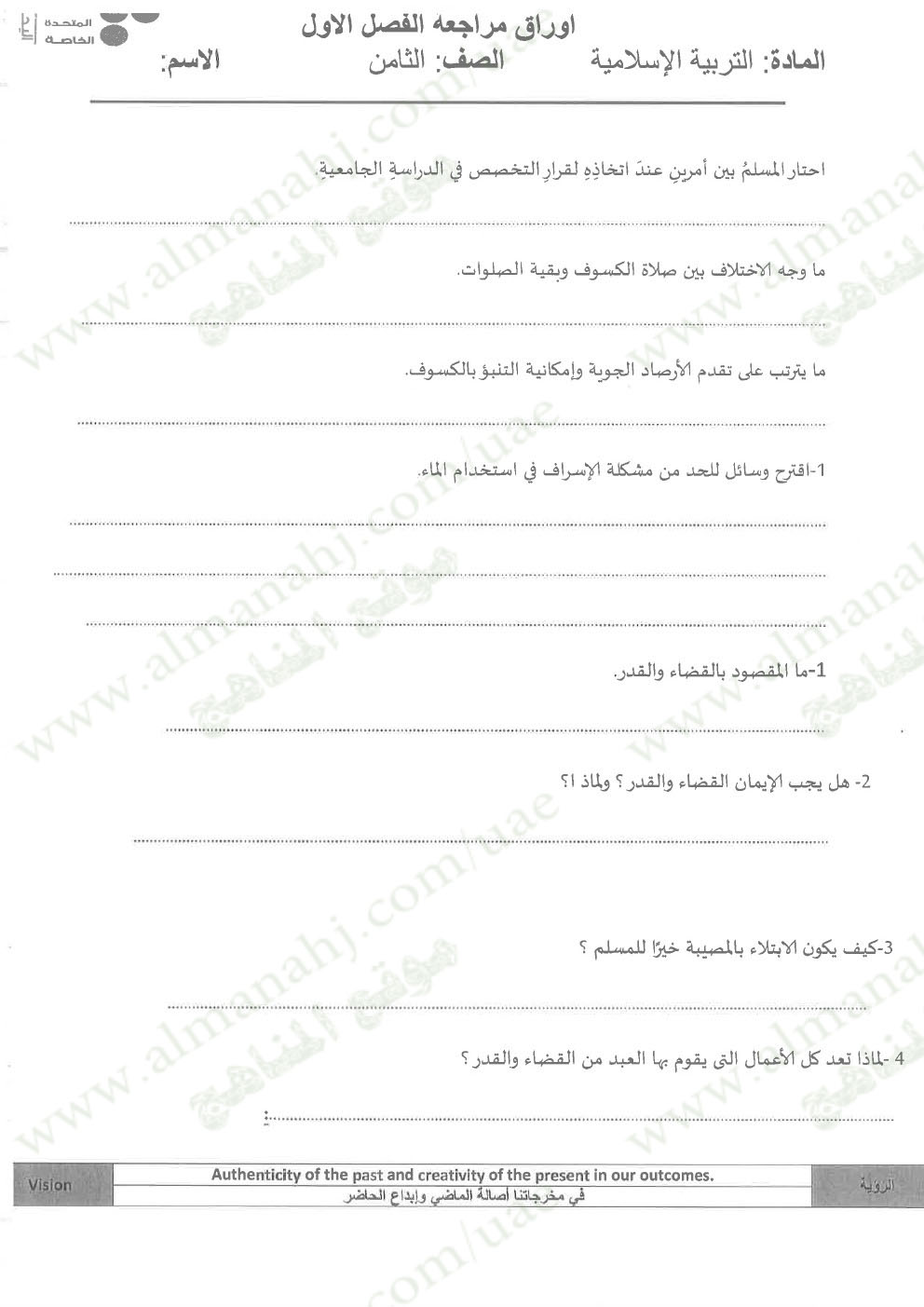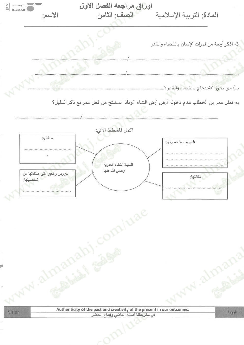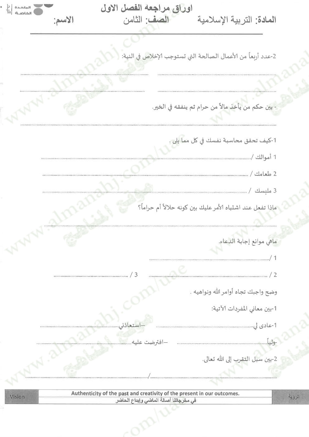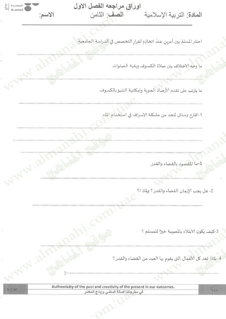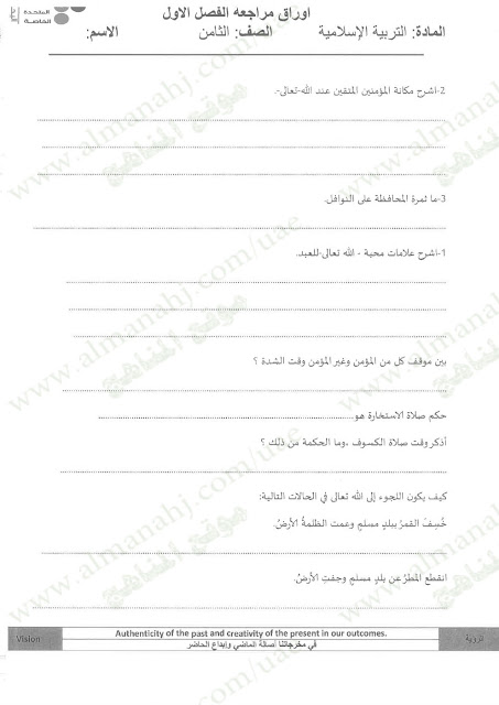 معلومات الملف: الصف الثامن, الفصل الأول, تربية اسلامية, 2017-2018, مراجعة شاملة قبل امتحان نهاية الفصل الاول | |||