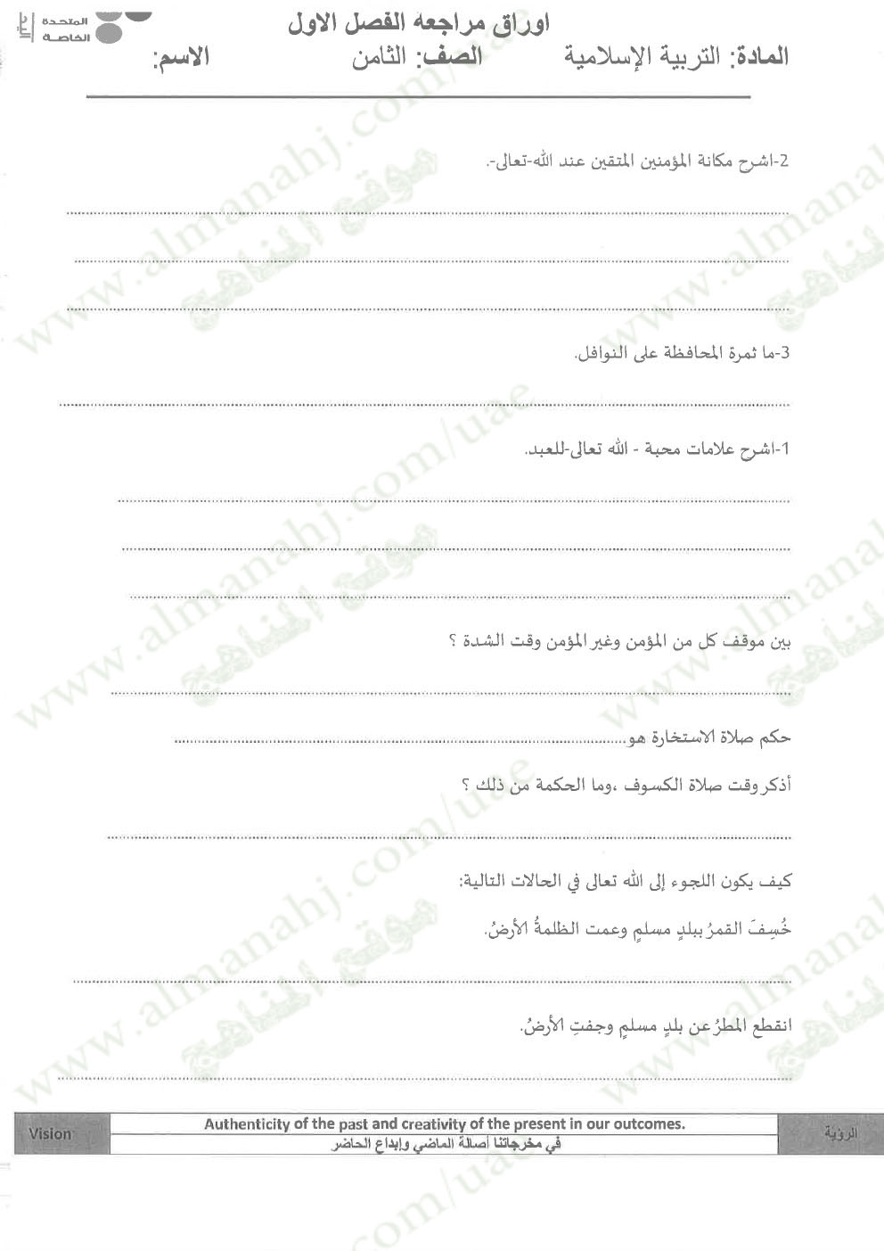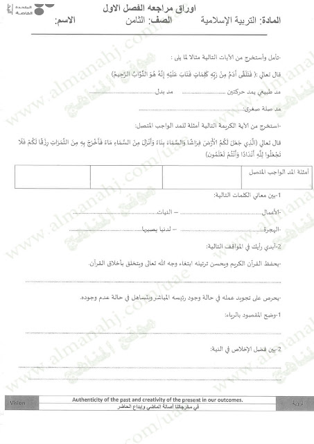المادة: تربية اسلامية | |||