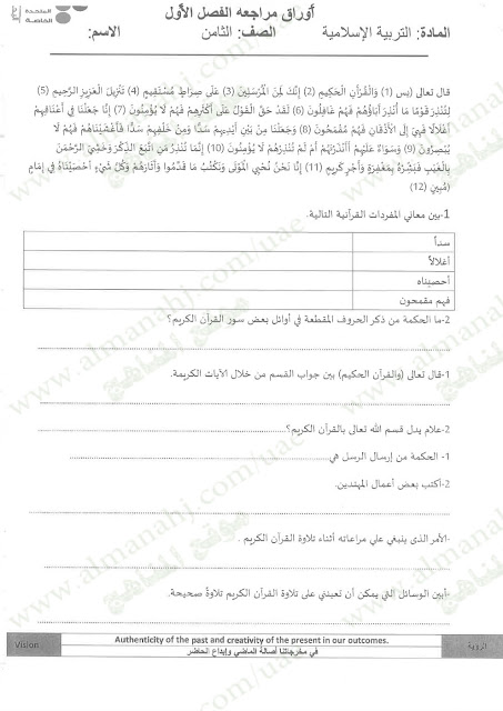 هذا الملف وزاري - اضغط هنا للحصول على جميع كتب الصف الثامن | |||