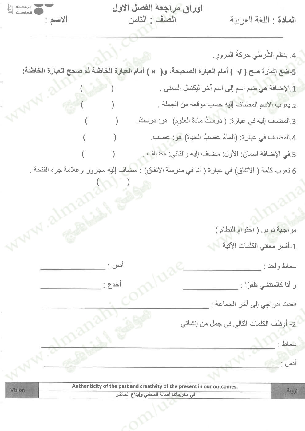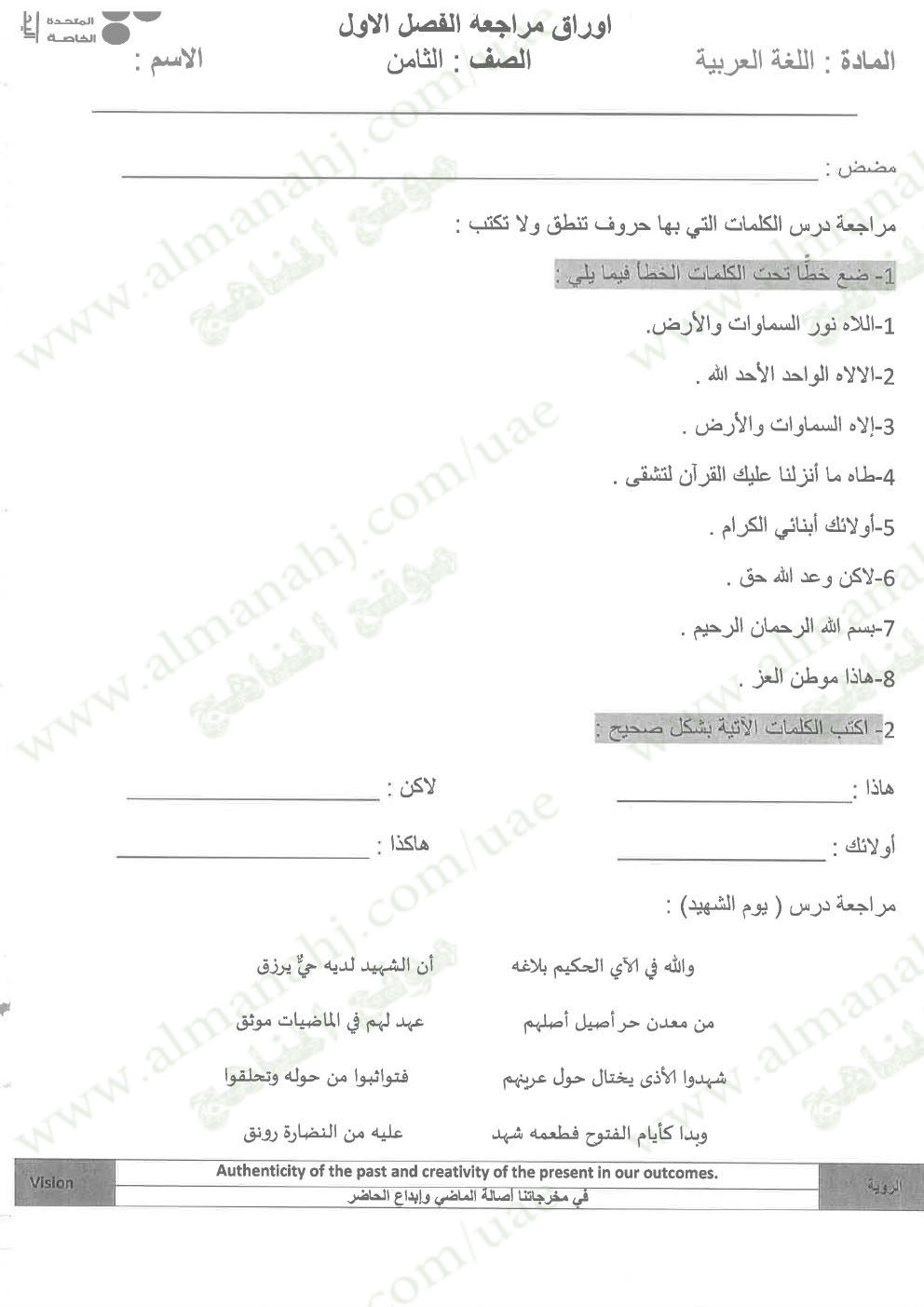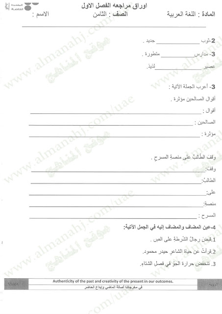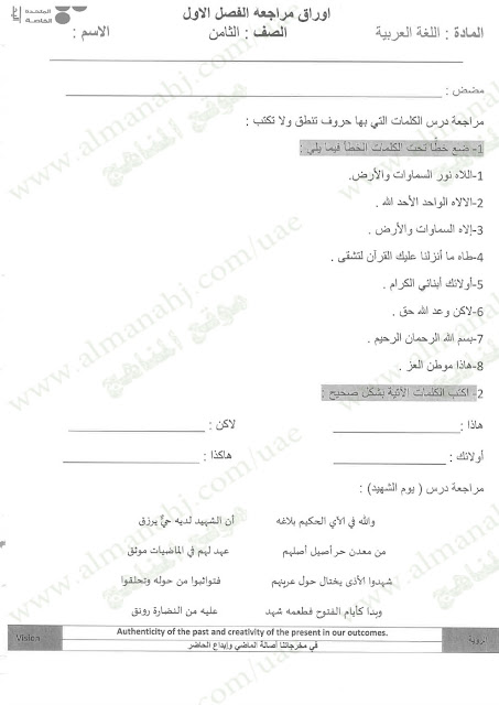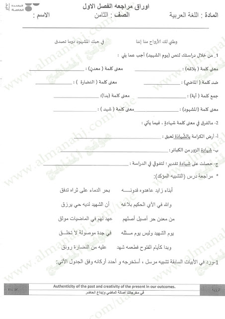 معلومات الملف: الصف الثامن, الفصل الأول, لغة عربية, 2017-2018, مراجعة شاملة قبل امتحان نهاية الفصل الاول | |||