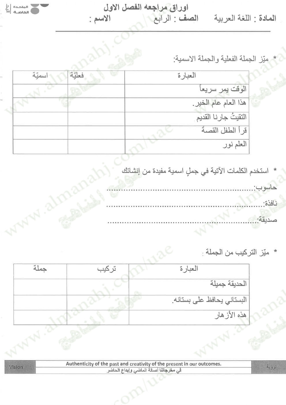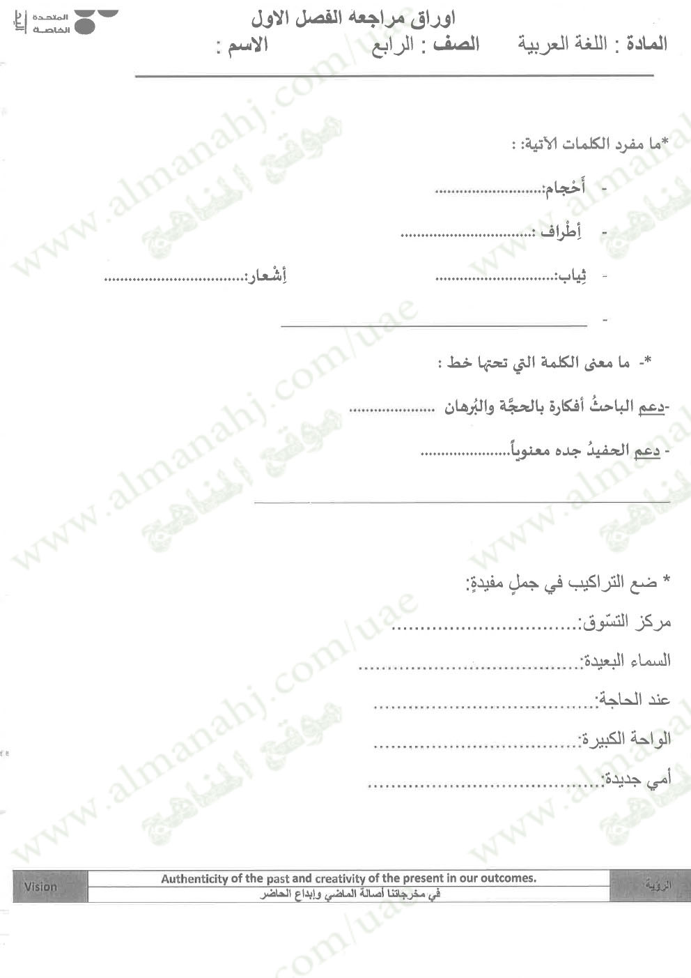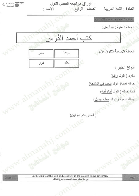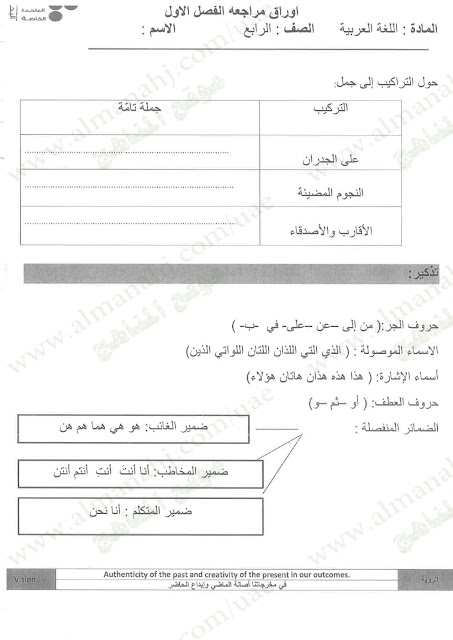 معلومات الملف: الصف الرابع, الفصل الأول, لغة عربية, 2017-2018, مراجعة نهائية لامتحان نهاية الفصل الاول مع الحل | |||