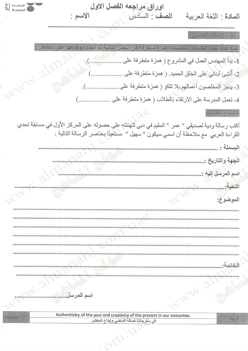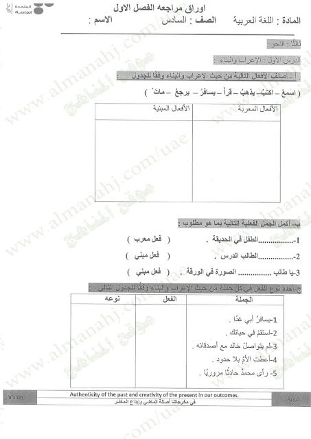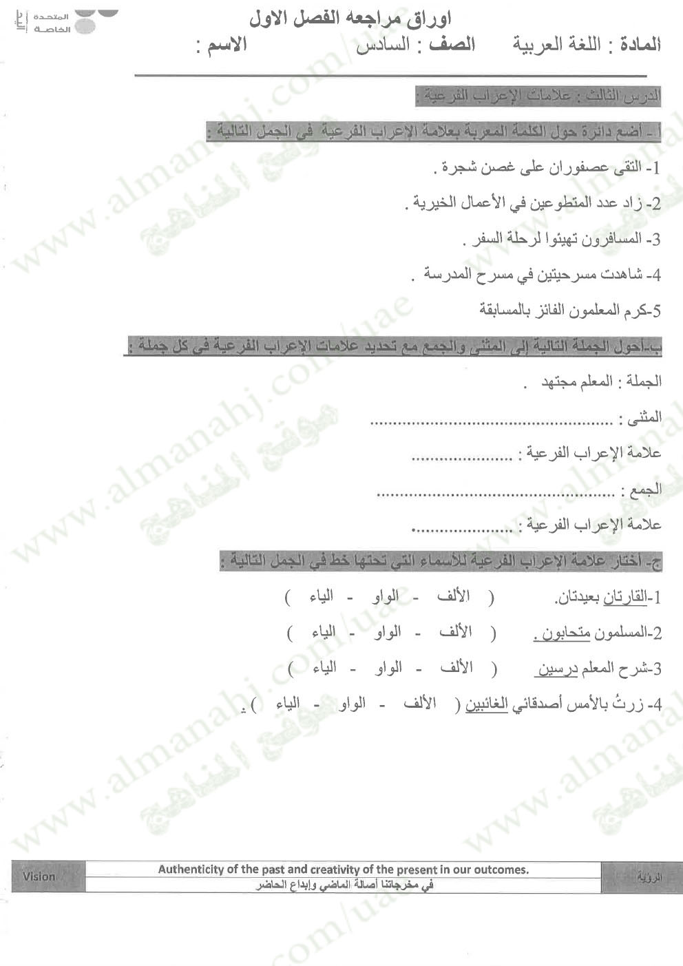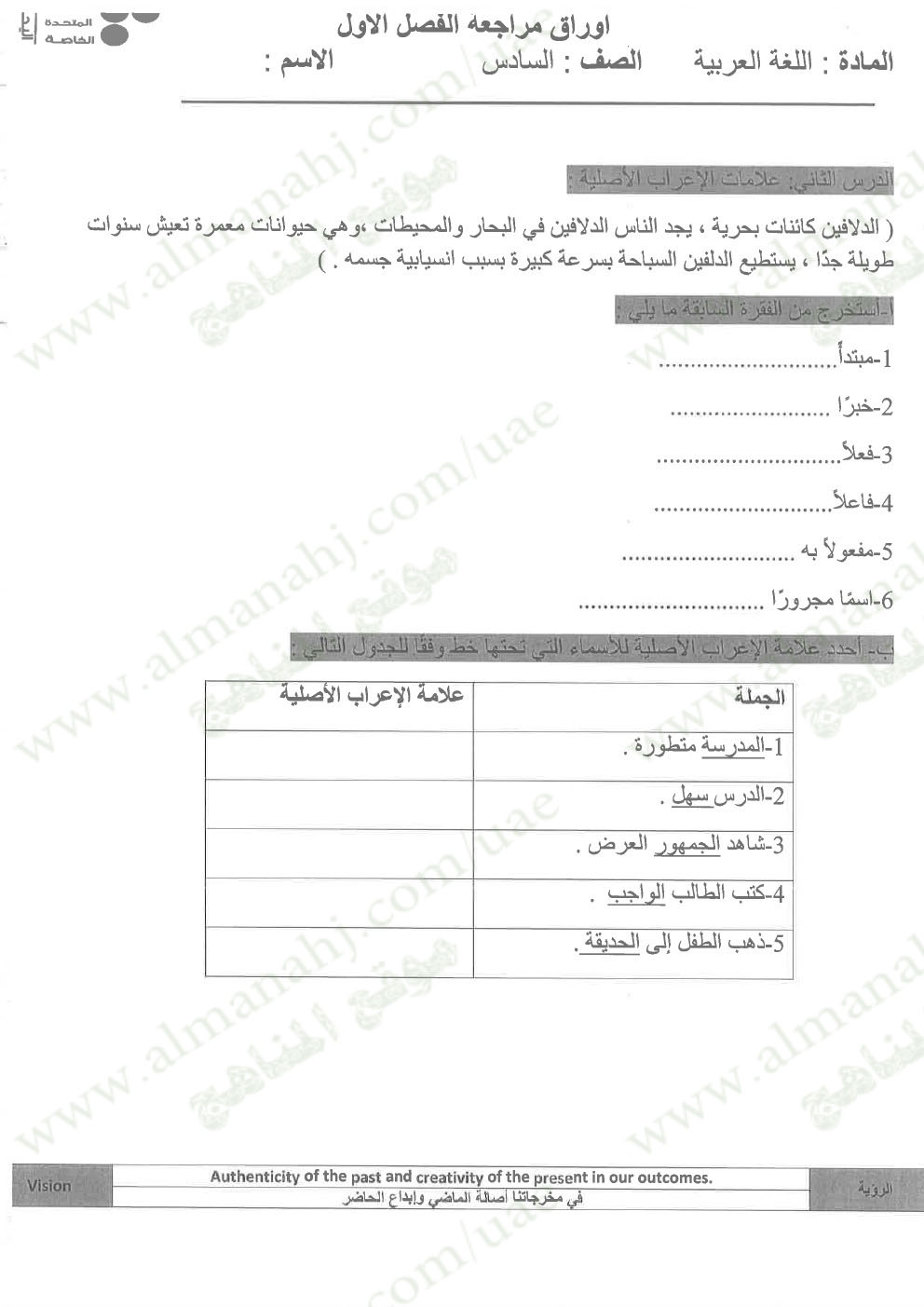 معلومات الملف: الصف السادس, الفصل الأول, لغة عربية, 2017-2018, أوراق مراجعة لامتحان نهاية الفصل الاول مع الحل | |||